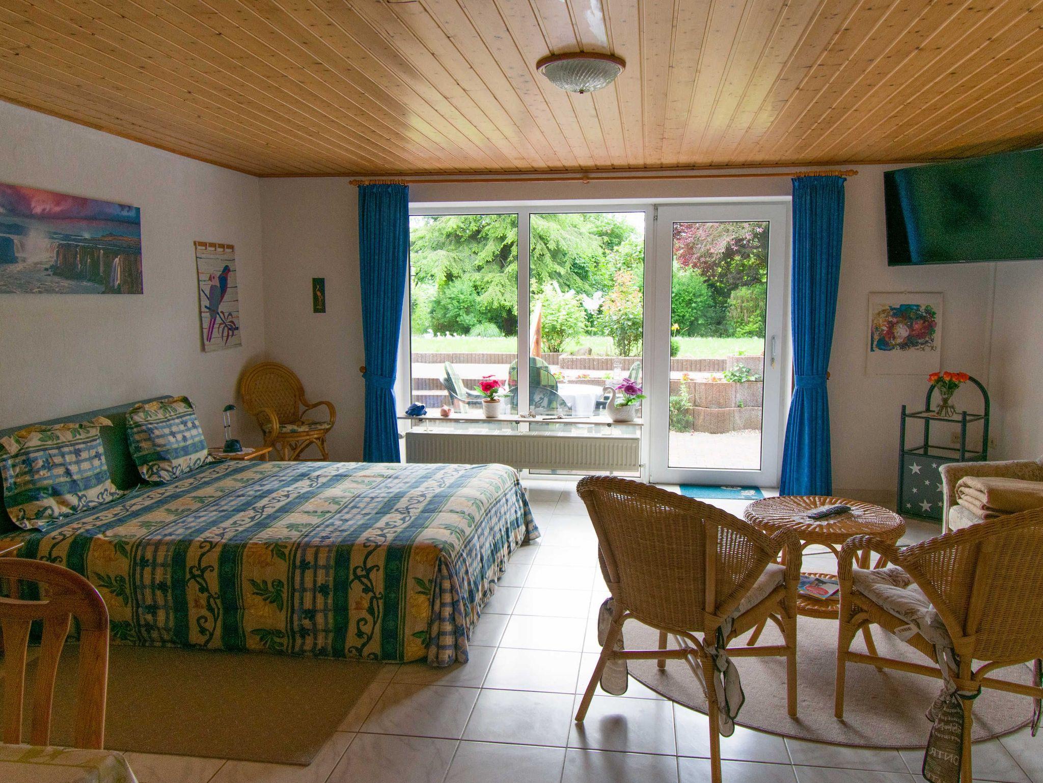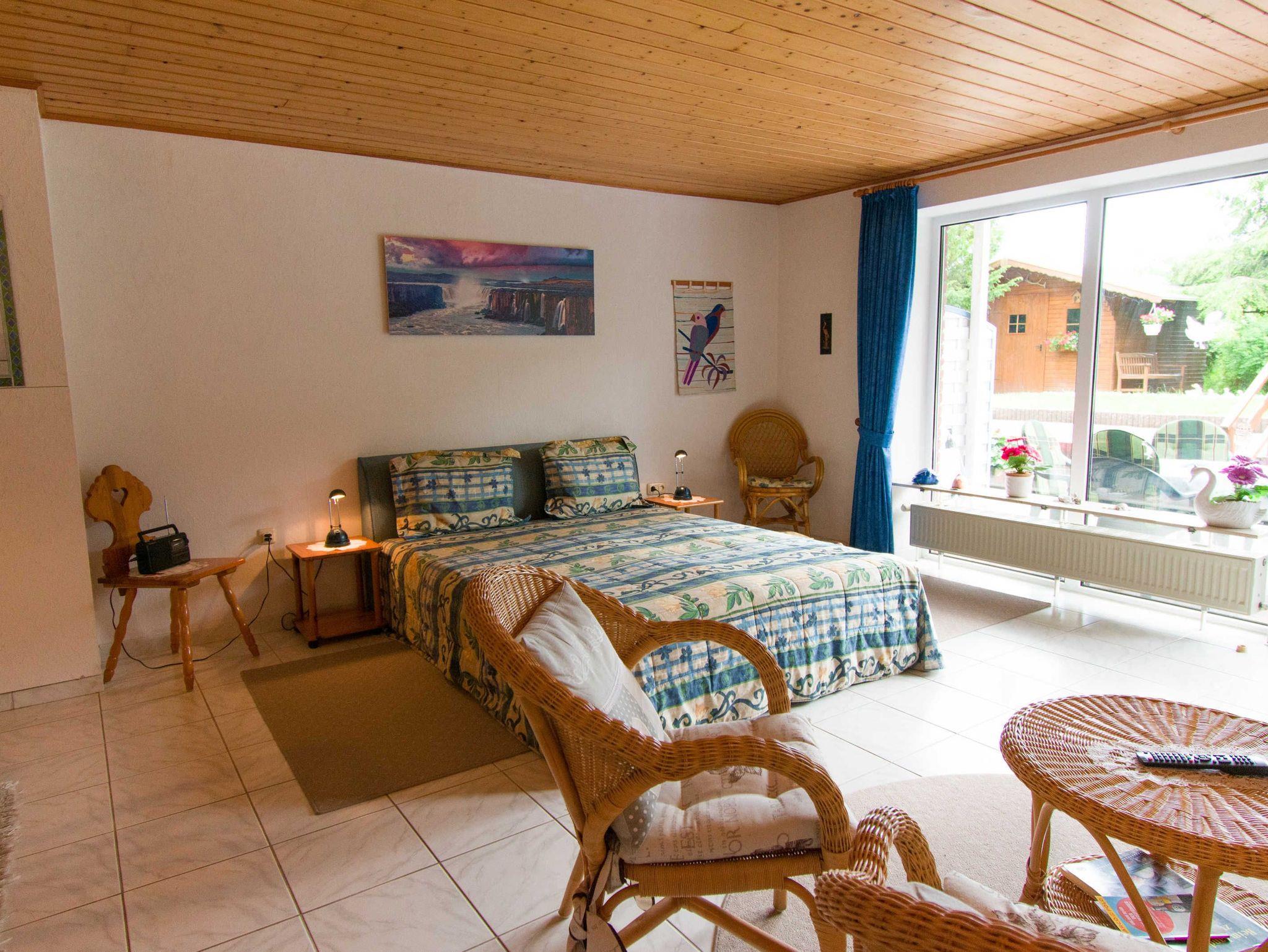 Unsere komfortablen Ferienwohnungen haben alle separate Eingänge; Farb -TV und Balkon oder Terasse mit Südseite, Tisch, Stühle und Sonnenliegen.Auf unserem Hof, findet jeder Feriengast seinen eigenen Autostellplatz, mitgebrachte oder geliehene Fahrräder können im Holzhaus untergebracht werden.