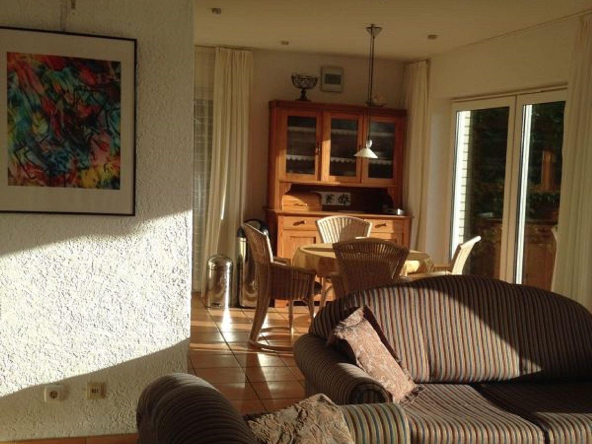 Schöne helle Ferienwohnung 60 m² im Erdgeschoss mit geräumiger Terrasse und Garten mit Liegewiese. Das Grundstück liegt direkt an der Schlei und hat einen eigenen Wasserzugang.