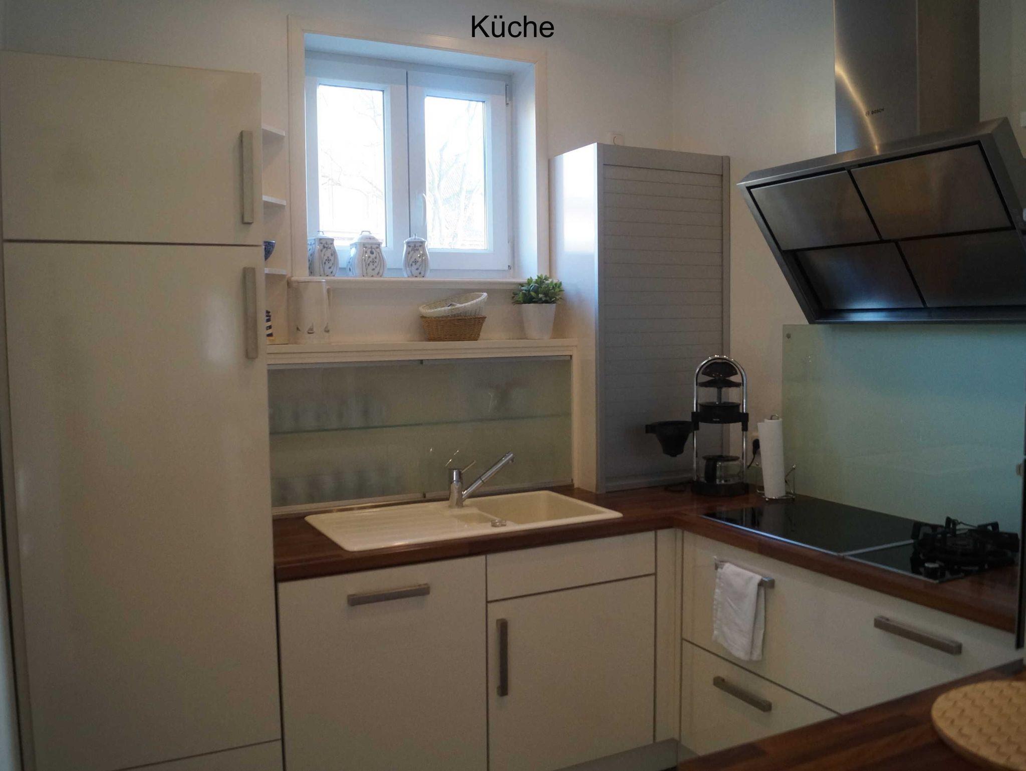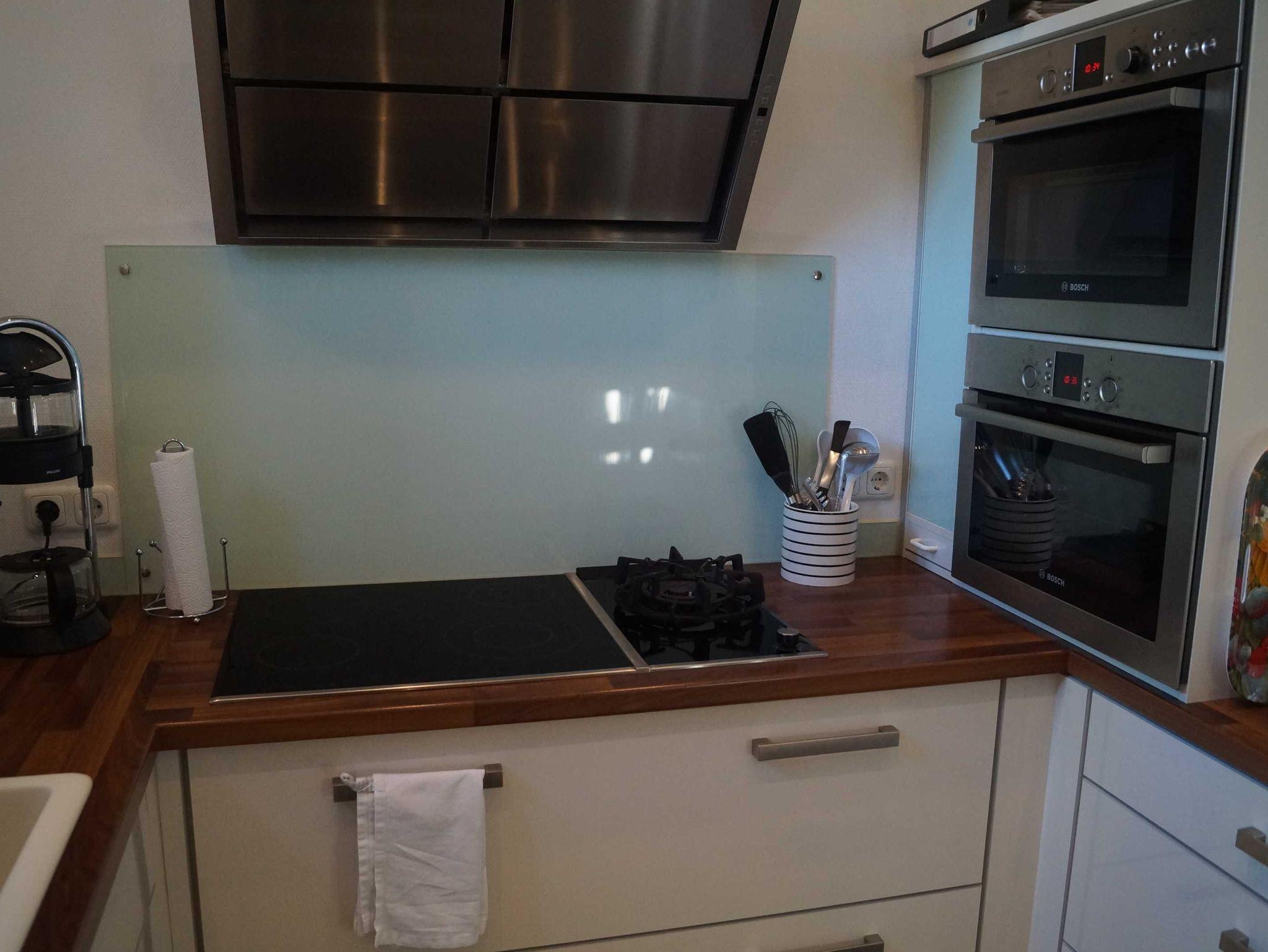 Die helle Küche ist mit Geschirrspüler, Mikrowelle, Kühlschrank mit Gefrierfach, Toaster, Kaffeemaschine, Wasserkocher, Herd ( Ceranfeld und Gaskochstelle) und separatem Ofen ausgestattet.