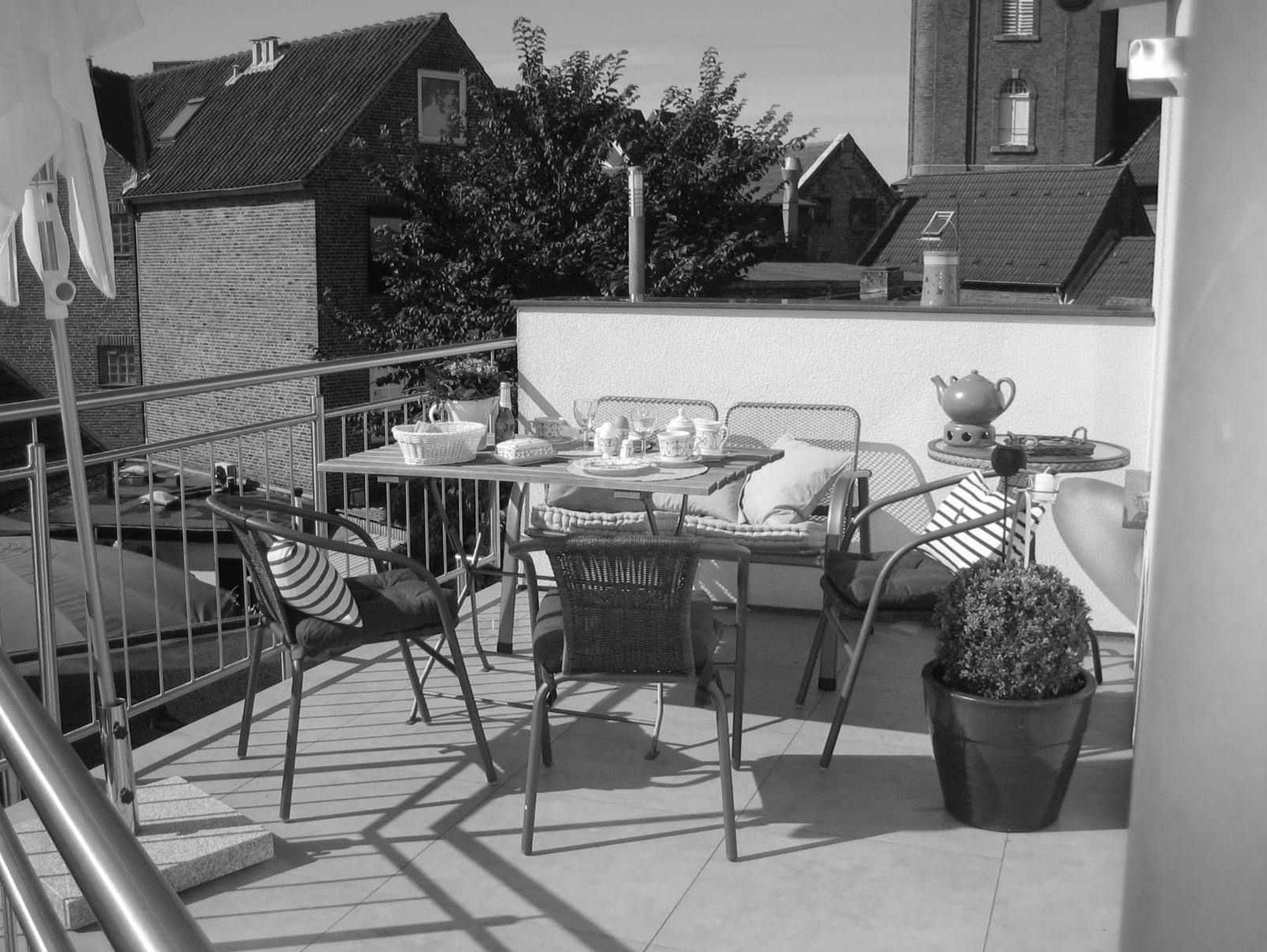 An schönen Tagen lädt der Balkon mit Blick über die Dächer zum luftigen Verweilen ein.