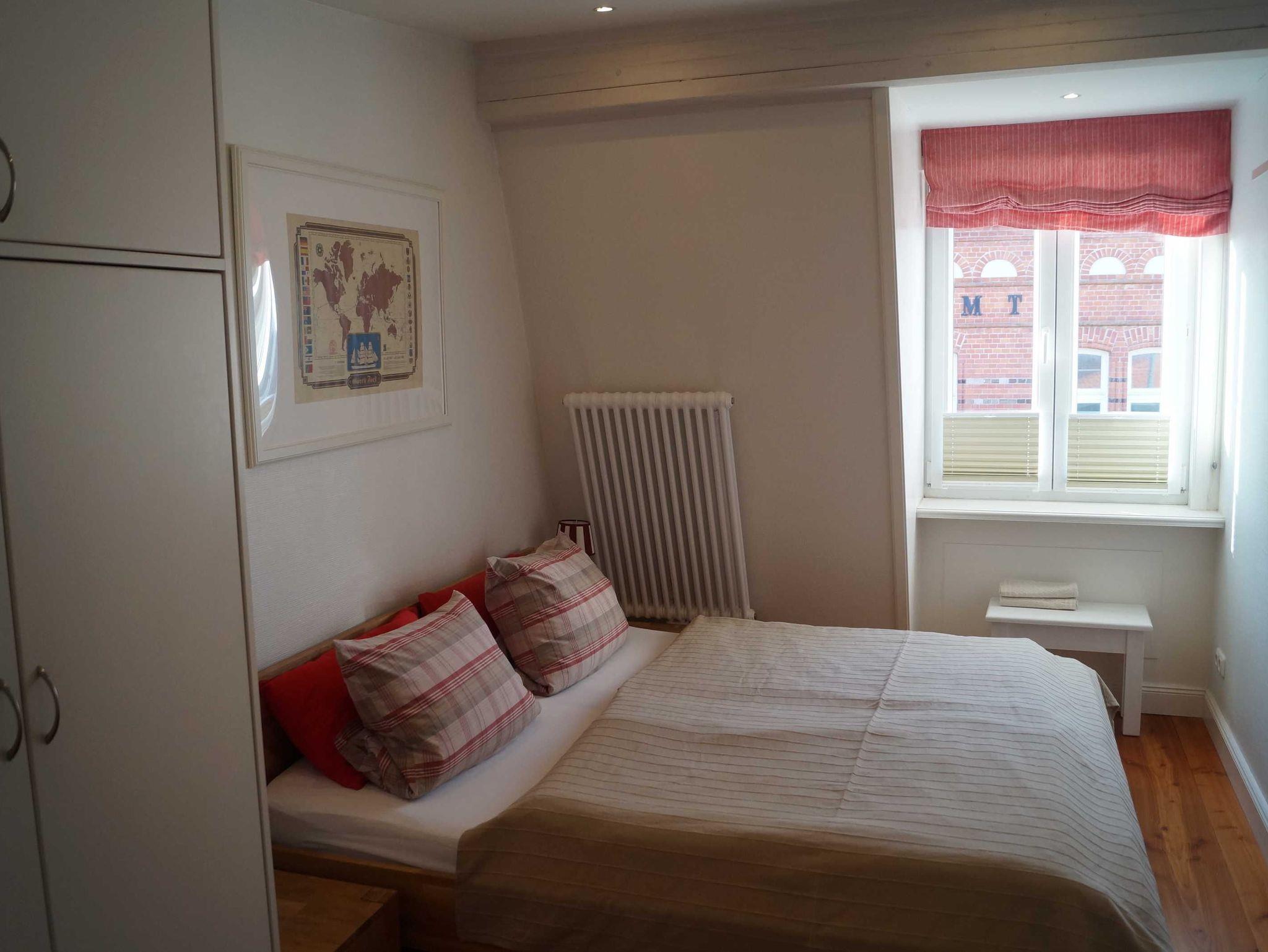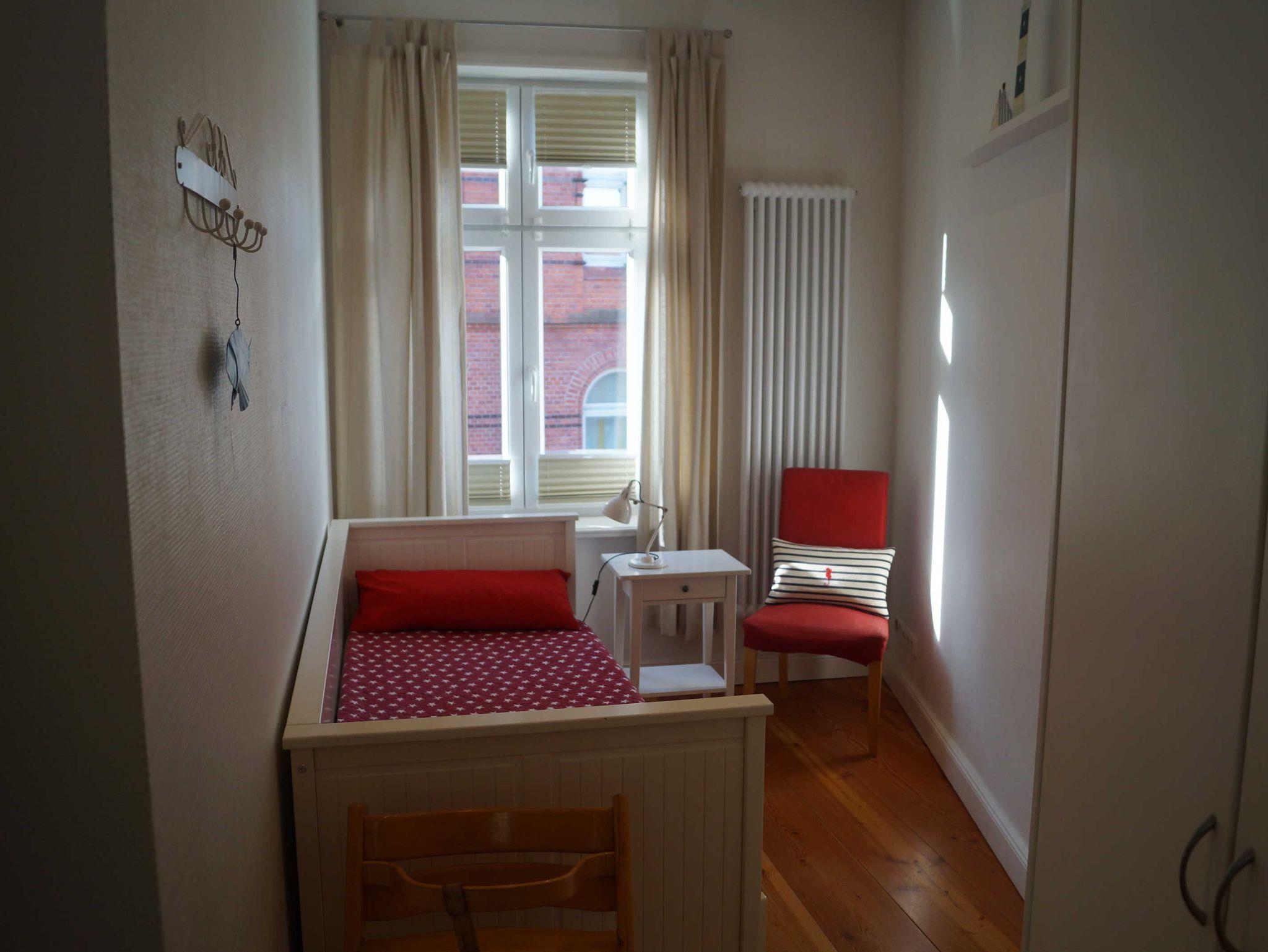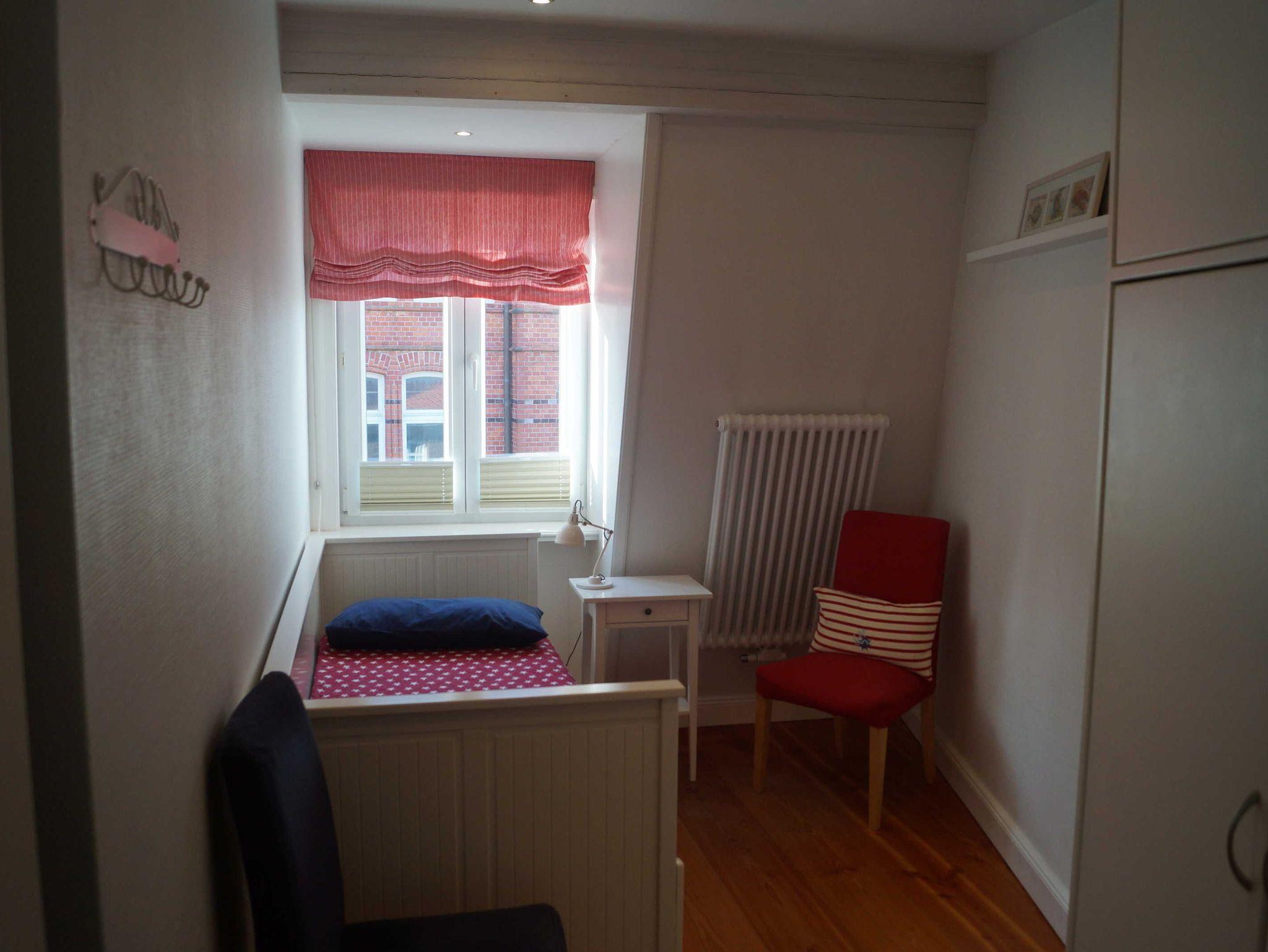 Die Ferienwohnung verfügt im 1. und 2. OG über je 2 Schlafzimmer mit einem Doppelbett (180 x 200) bzw. einem Kojenbett, die jeweils mit Schrank, Kleiderstuhl und Kleiderablage ausgestattet sind.