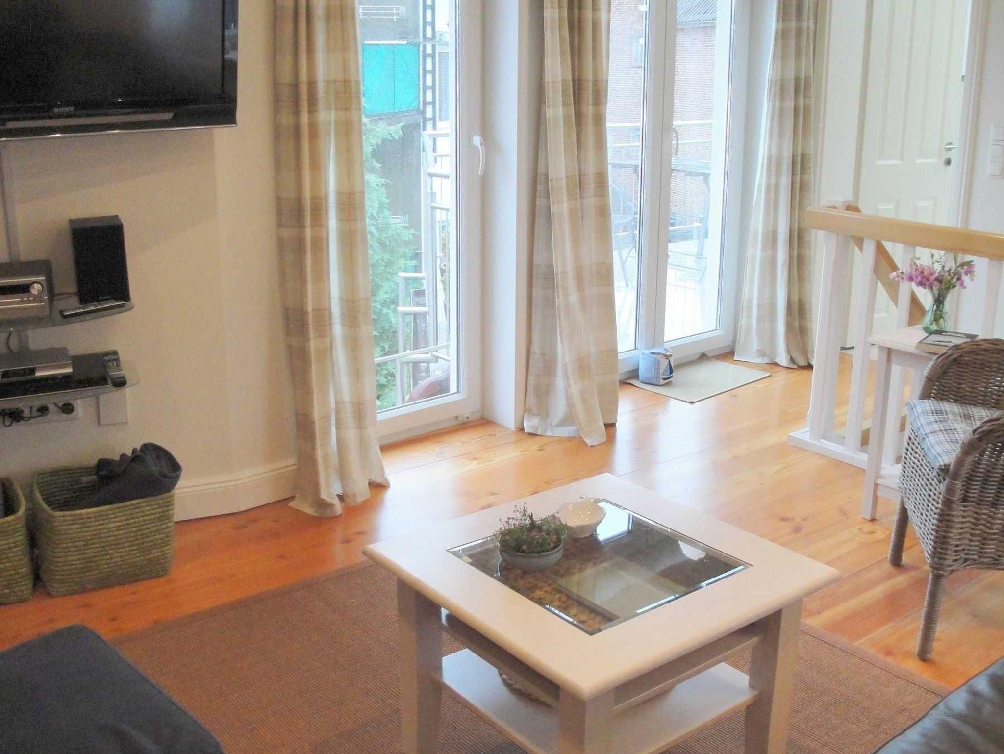 Die hell und geschmackvoll eingerichtete Ferienwohnung (100 qm), geeignet für bis zu 6 Personen befindet sich im 1. und 2. OG eines Stadthauses mit eigenem Balkon und 1 reserviertem Parkplatz (ca. 300 m vom Haus entfernt).