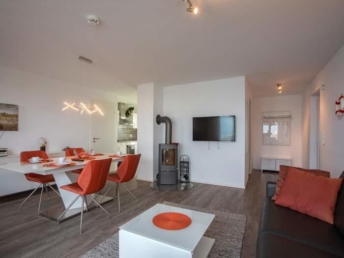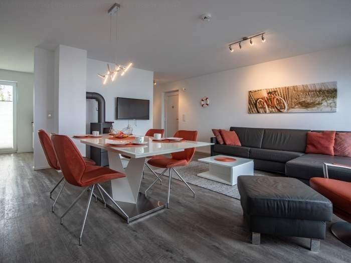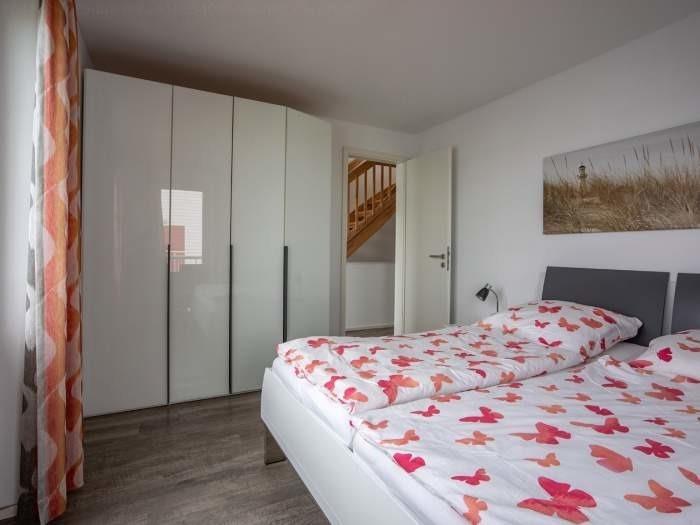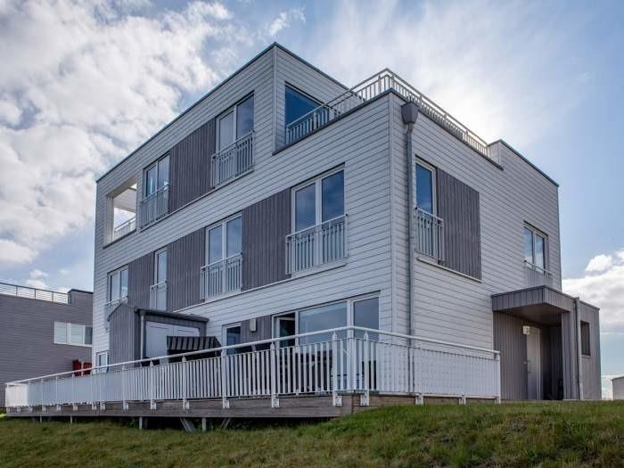 Das Ferienhaus liegt im Resort direkt an der Westmole und bietet mit seinen bodentiefen Fenstern einen tollen Ausblick über den Hafen und die Schlei. Das Haus hat drei Etagen inklusive einer Galerie. Es ist mit einer Terrasse, Dachterrasse, Kamin und Sauna sowie Whirlpool luxuriös ausgestattet. Bis zu 7 Gäste finden heir in zwei Schlafzimmern, eines mit Doppelbett und eines mit zwei Einzelbetten und auf zwei Schlafcouches Platz. Es gibt zwei Bäder, die jeweils mit einer Dusche ausgestattet sind.