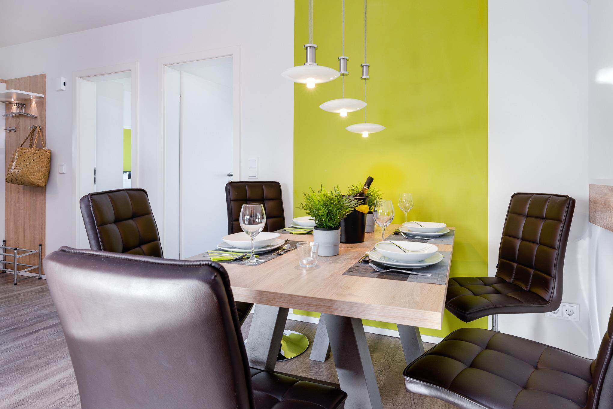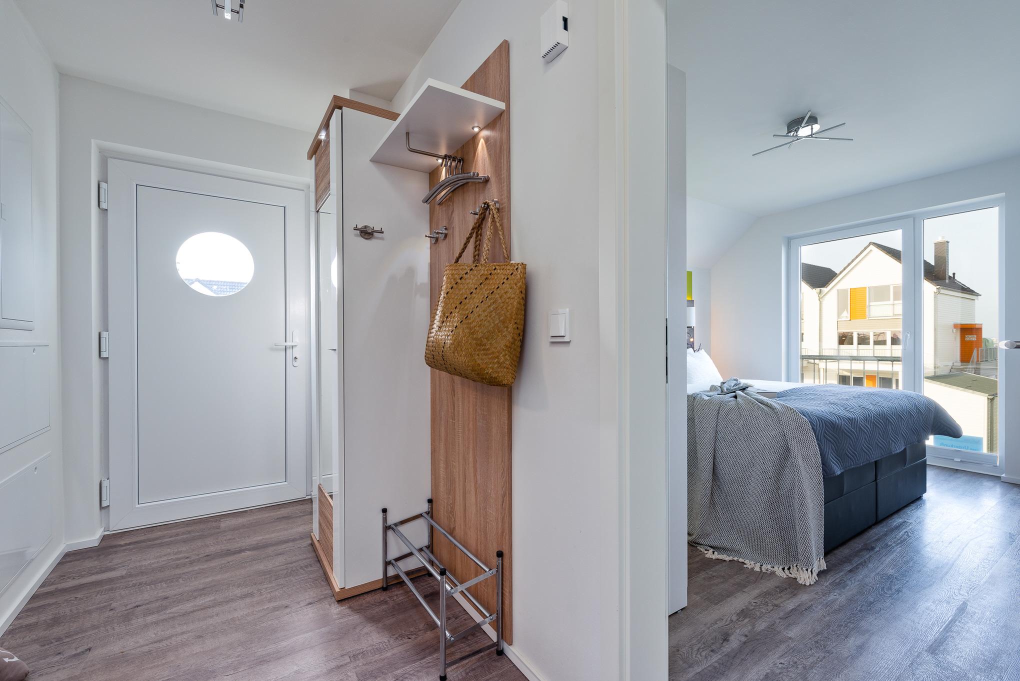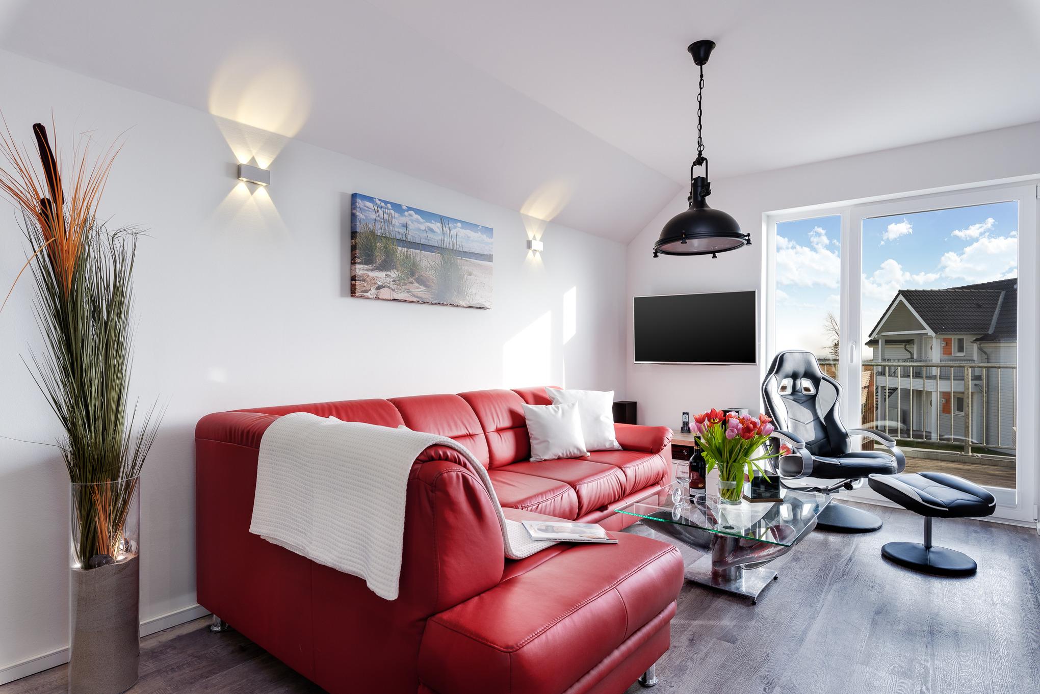 Bei dieser Ferienwohnung sind spektakuläre Sonnenlichtspiele durch die zwei Balkone in Süd- und Westausrichtung zu erwarten. Der Einrichtungsstil entspricht der exklusiven Lage der Ferienwohnung: Klare Farben und Formen, sowie der Einsatz natürlicher Materialien, versprechen Ruhe und Rückzug, während einzelne Farbakzente für erfrischende Leichtigkeit sorgen. Die gesamte Ferienwohnung lässt sich über die Fußbodenheizung einfach temperieren und bietet dank des Kaminofens und der Sauna das ganze Jahr über eine angenehme Wärme und eine gemütlich-wohlige Atmosphäre. Für Unterhaltung sorgen im Wohnbereich ein 42 Zoll Ultra HD Smart TV, Musik-Anlage mit WLAN und Bluetooth-Empfänger, Bücher sowie eine Spielesammlung. Darüber hinaus verfügt die Wohnung über einen kostenlosen Pkw-Stellplatz mit E-Ladesäule, für ein Elektroauto direkt am Haus.