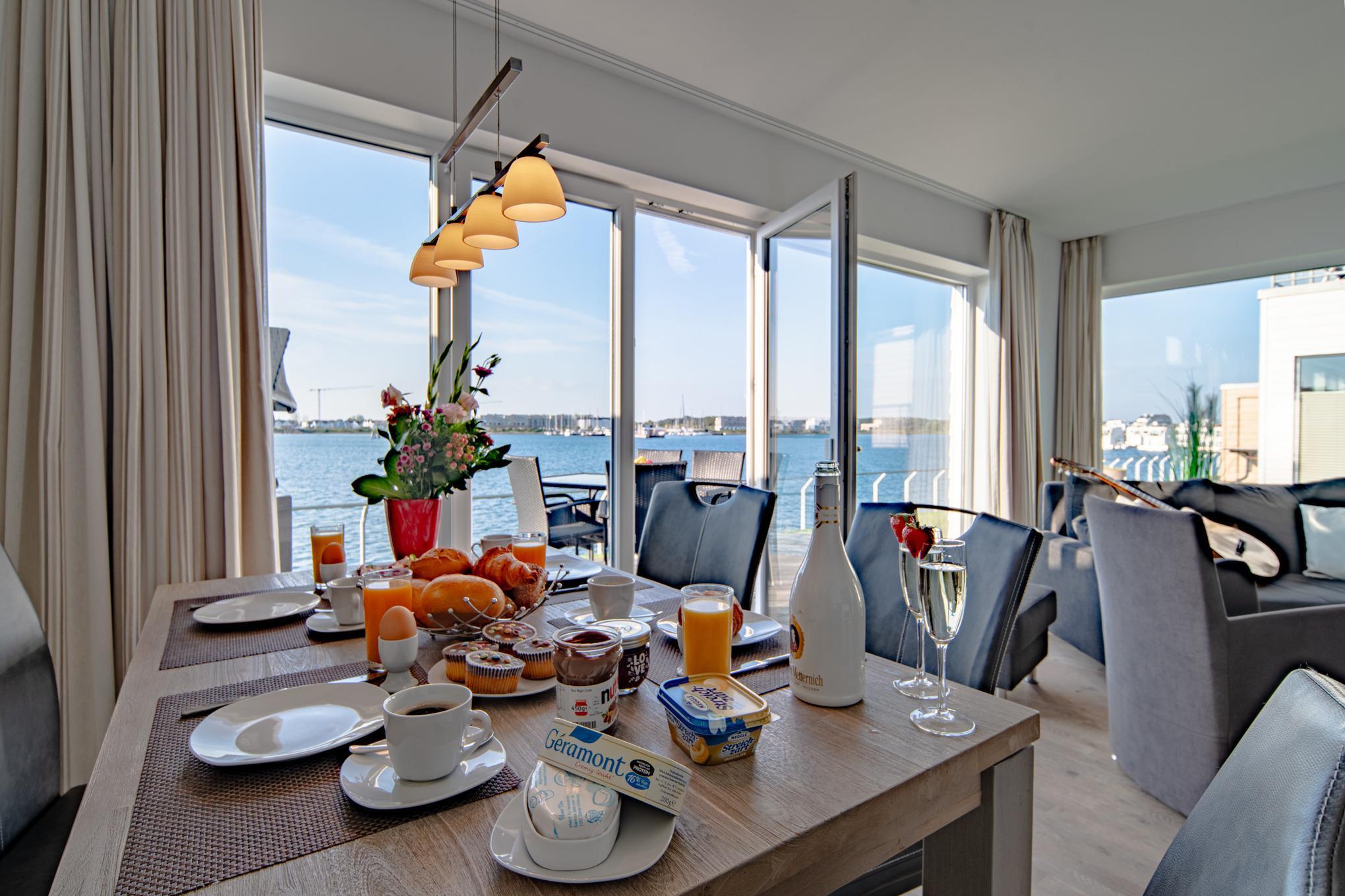 Lage direkt zwischen Hafen und Schlei, Wasserblick sowohl vom Wohnbereich als auch von den beiden Schlafzimmern, sonnige Südwest-Terrasse, eigene Infrarot-SAUNA und Badewanne mit Whirlpool.