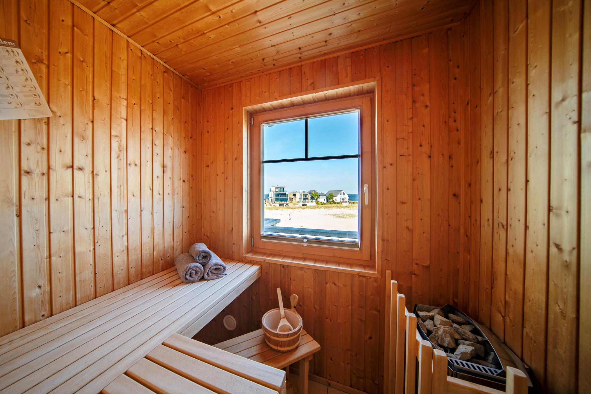Die eingebaute Sauna mit Blick auf Strand und Ostsee im 2. Obergeschoß, ein Whirlpool im Bad sowie der Kaminofen im Studio sorgen für zusätzliches Urlaubsflair, insbesonders auch außerhalb von Saisonzeiten! Ein weiteres Highlight ist die große Dachterrasse mit fantastischem Panoramablick von der Kieler Förde bis zur dänischen Insel Ärö ...