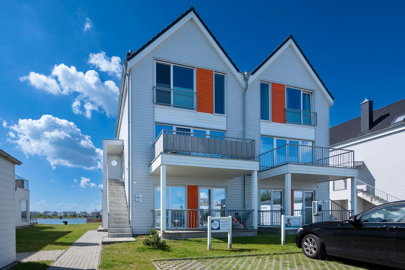 Die Ferienwohnung betritt man über eine Außentreppe, von hier könnte man sofort auf den ersten Südbalkon (ca.25 m²) gelangen, der mit einem Strandkorb, Teak-Deckchair und weiteren gemütlichen Möbeln zum Relaxen auf Sie wartet. Der Eingangsbereich führt in den Wohn-und Essbereich mit zusätzlichem Duschbad und WC. Auf der zweiten Ebene befindet sich Ihr Badezimmer, dies lässt Wellnessherzen höherschlagen, denn es verfügt über eine bodengleiche XXL Walk-In-Dusche, eine Whirlpool-Badewanne, eine Sauna (Infrarotkabine) mit Farblichttherapie und ein Radio mit Bluetooth. An der Wellnessoase vorbei, folgen zwei gut gestaltete Schlafzimmer mit Platz für fünf Erwachsene und einen traumhaften Blick aufs Wasser. Das Masterbedroom verfügt über ein Doppelbett (1,80 x 2,00) mit zusätzlichem 40 Zoll Smart TV, Blick auf die Marina, während ein Etagenbett (unten1,40 x 2,00 max.180kg), (oben 90x200 max. 75 kg) für 3 Personen im zweiten Schlafzimmer mit Blick auf die Schlei, auf Sie wartet.