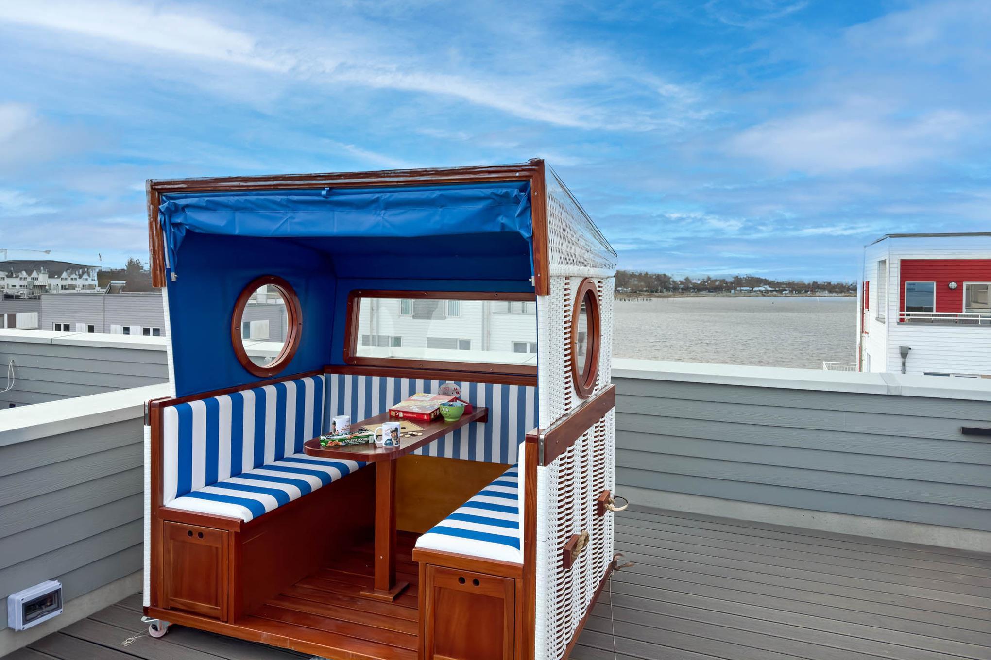 Die erstklassige Lage direkt am Wasser ermöglicht einen eigenen Bootsliegeplatz, dieser befindet sich allerdings noch in Planung, am Haus. Für Familien stehen Kinderreisebett, Kinderhochstuhl sowie Spielzeug für drinnen und draußen bereit. Ein abschließbarer Fahrradschuppen mit Lademöglichkeit für E-Bikes und eine Wall-Box für Ihr E-Auto runden das Angebot ab.