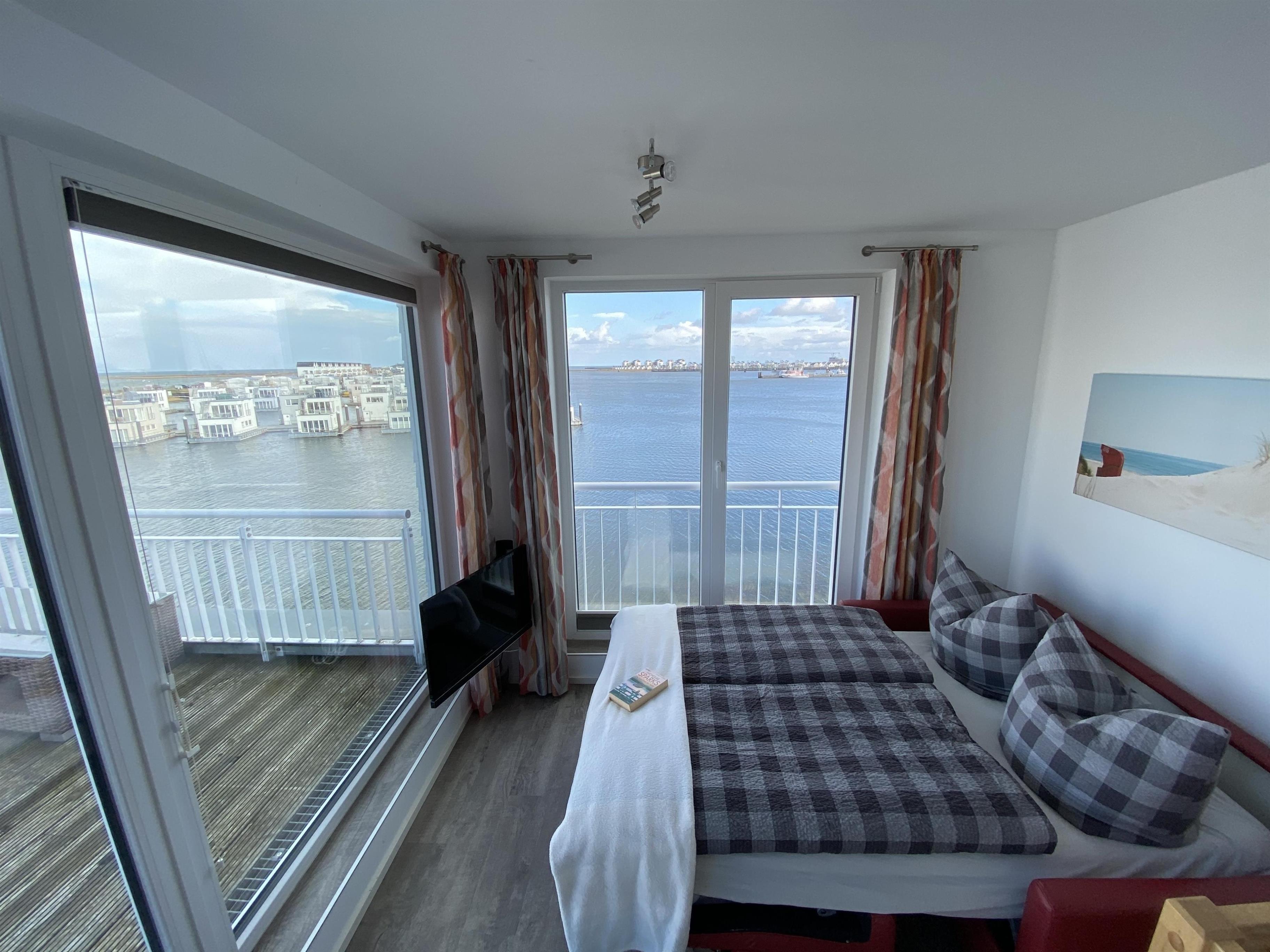 Einen Wohn-/Schlafbereich auf der Galerie im 2. Obergeschoß mit bequemem Schlafsofa und herrlichem Blick.