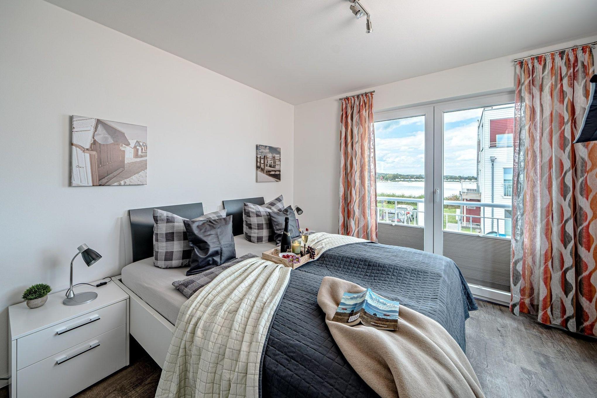 Einzigartiger Lage im OstseeResorts zwischen Schlei und Hafen, Dachterrasse, Kamin, Sauna, Badewanne mit Whirlpoolfunktionen.