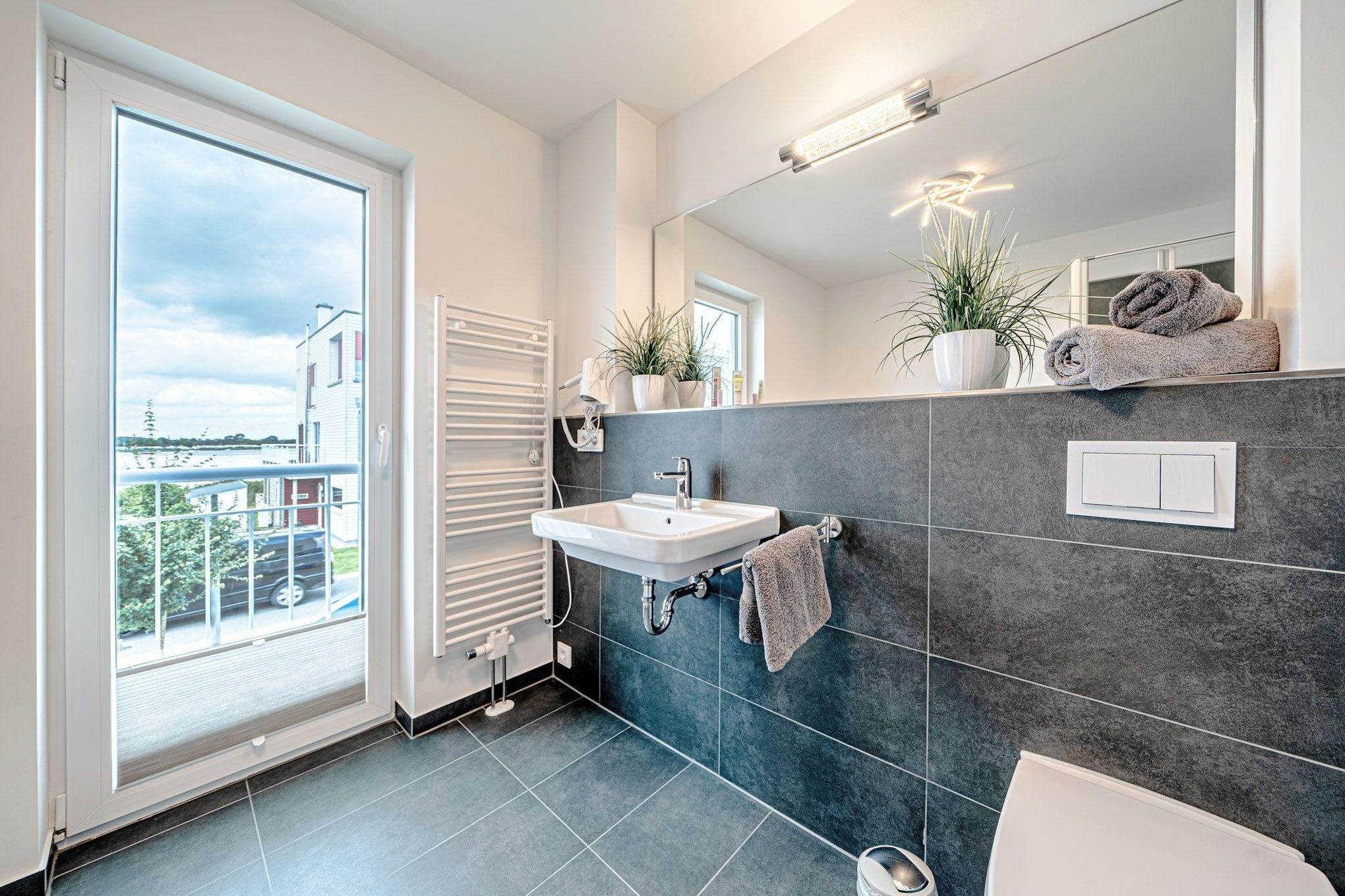 Exclusive Doppelhaushälfte Lootsen Hus by Seeblick Ferien ORO auf 3 Ebenen, in einzigartiger Lage im OstseeResorts zwischen Schlei und Hafen, mit 127 qm Wohnfläche, Terrasse und Dachterrasse, Kamin, Sauna, Badewanne mit Whirlpoolfunktionen– und faszinierendem Weitblick auf Hafen, Schlei und Ostsee!