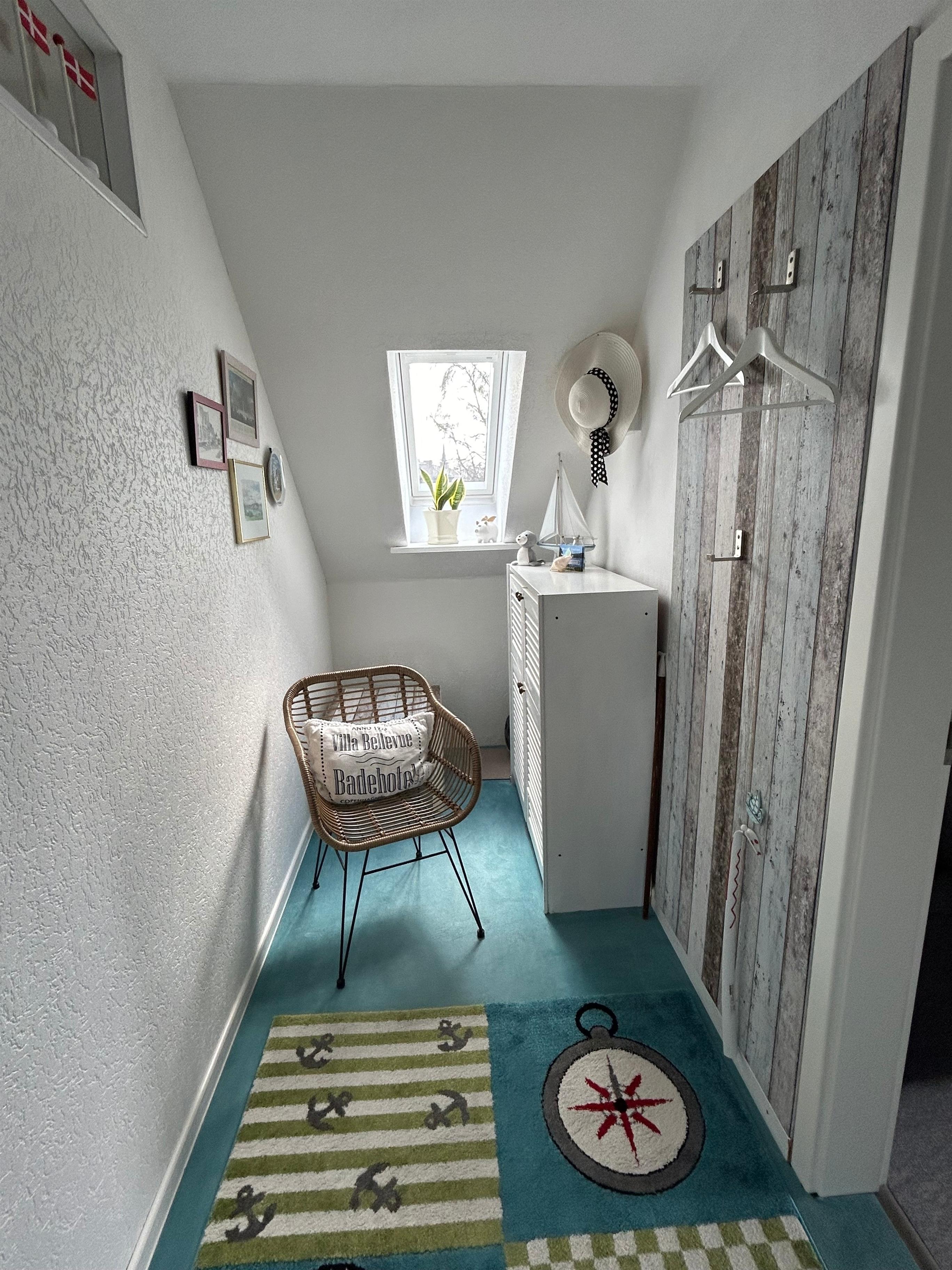 Das gepflegte Einfamilienhaus liegt in zentraler Lage in einer ruhigen Sackgasse. Die Ferienwohnung befindet sich im Obergeschoss und ist mit einer separaten Eingangstür zu erreichen. Der Garten kann genutzt werden. Die Wohnung wurde 2015 komplett renoviert. Das Haus verfügt über eine gepflegte Gartenanlage mit Sitzecken und Liegen. Strandkorb und Gartengrill stehen bereit. Unterstellmöglichkeiten für Motor- und Fahrräder sind vorhanden. Ein PKW-Stellplatz befindet sich direkt am Haus.