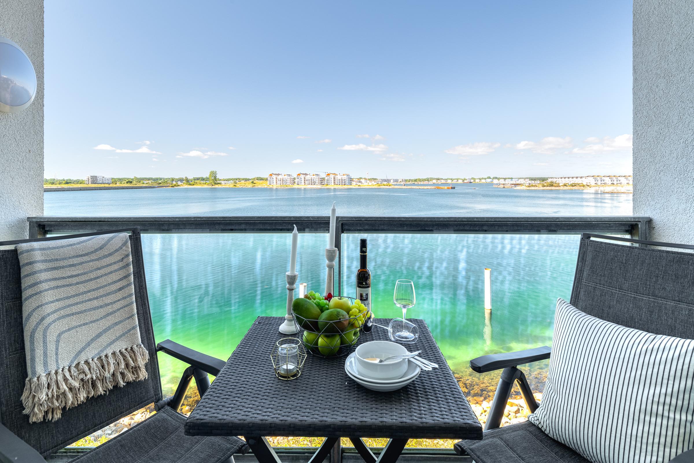 Traumwohnung direkt am Wasser mit Panorama-Wasserblick aus jedem Raum, großer Süd-West-Balkon - Wellness pur! Ab Mitte Juni 2025 mit kleinem Schwimmbad und 2 Saunen zur kostenlosen Nutzung im Wellnessbereich!