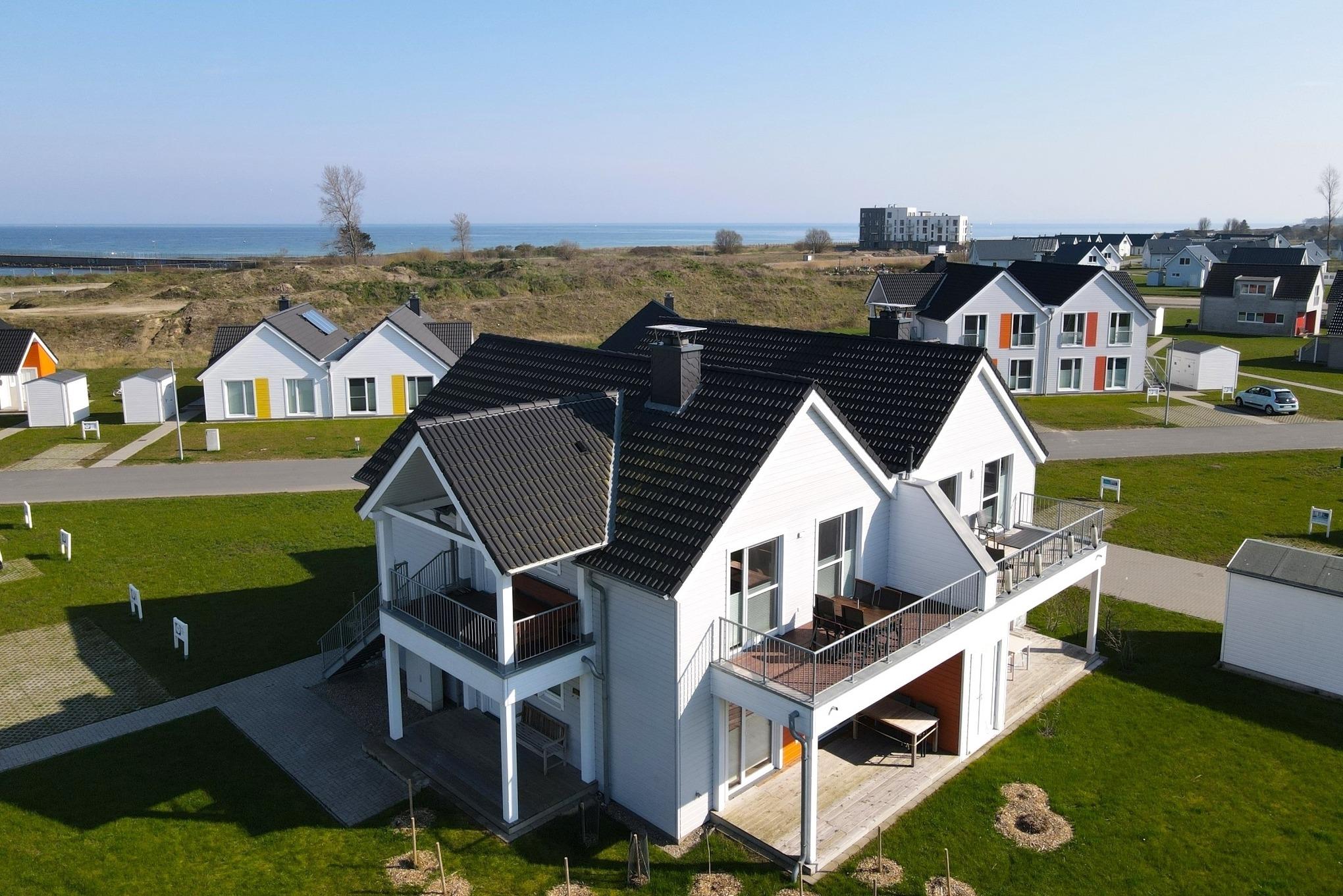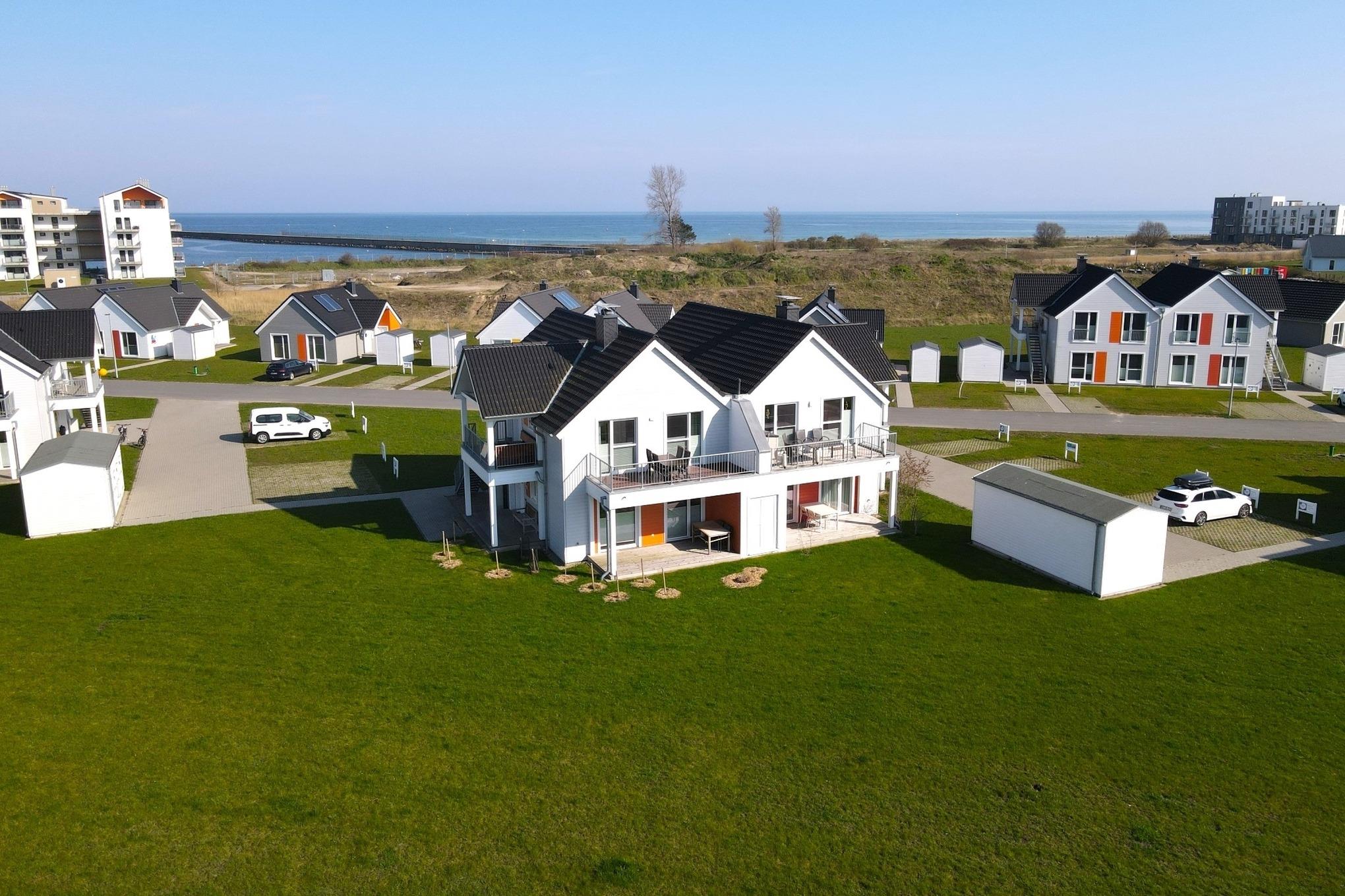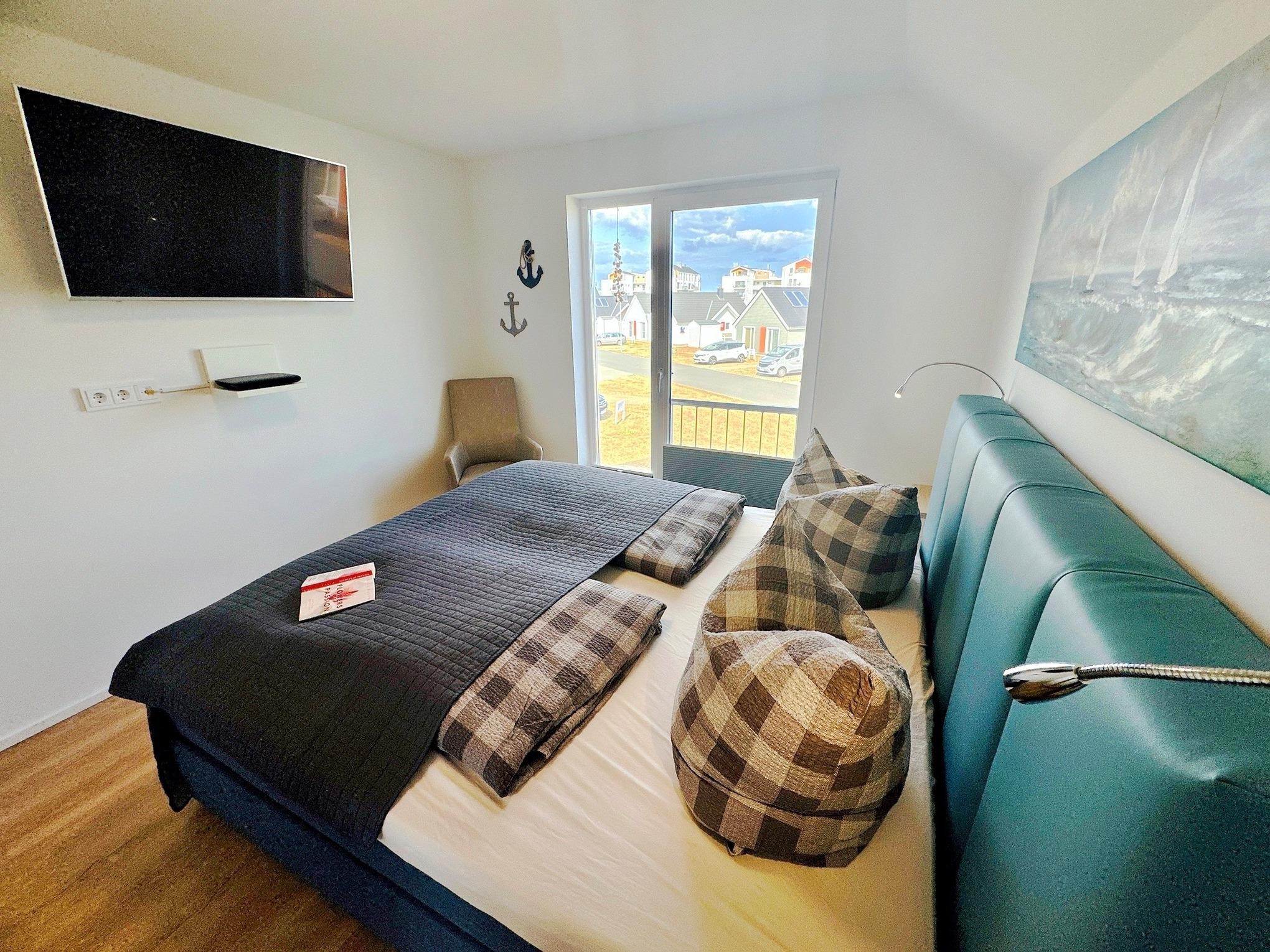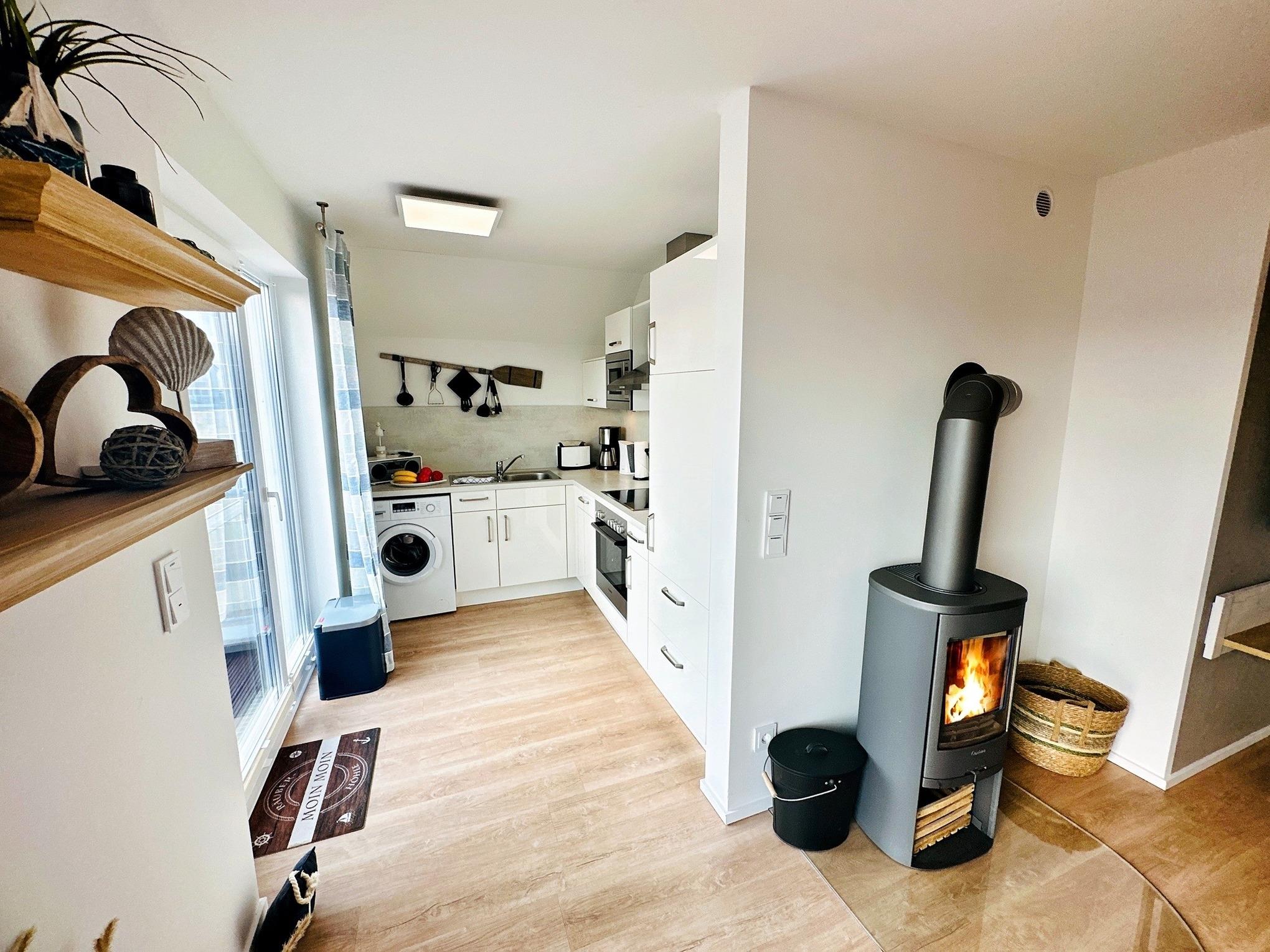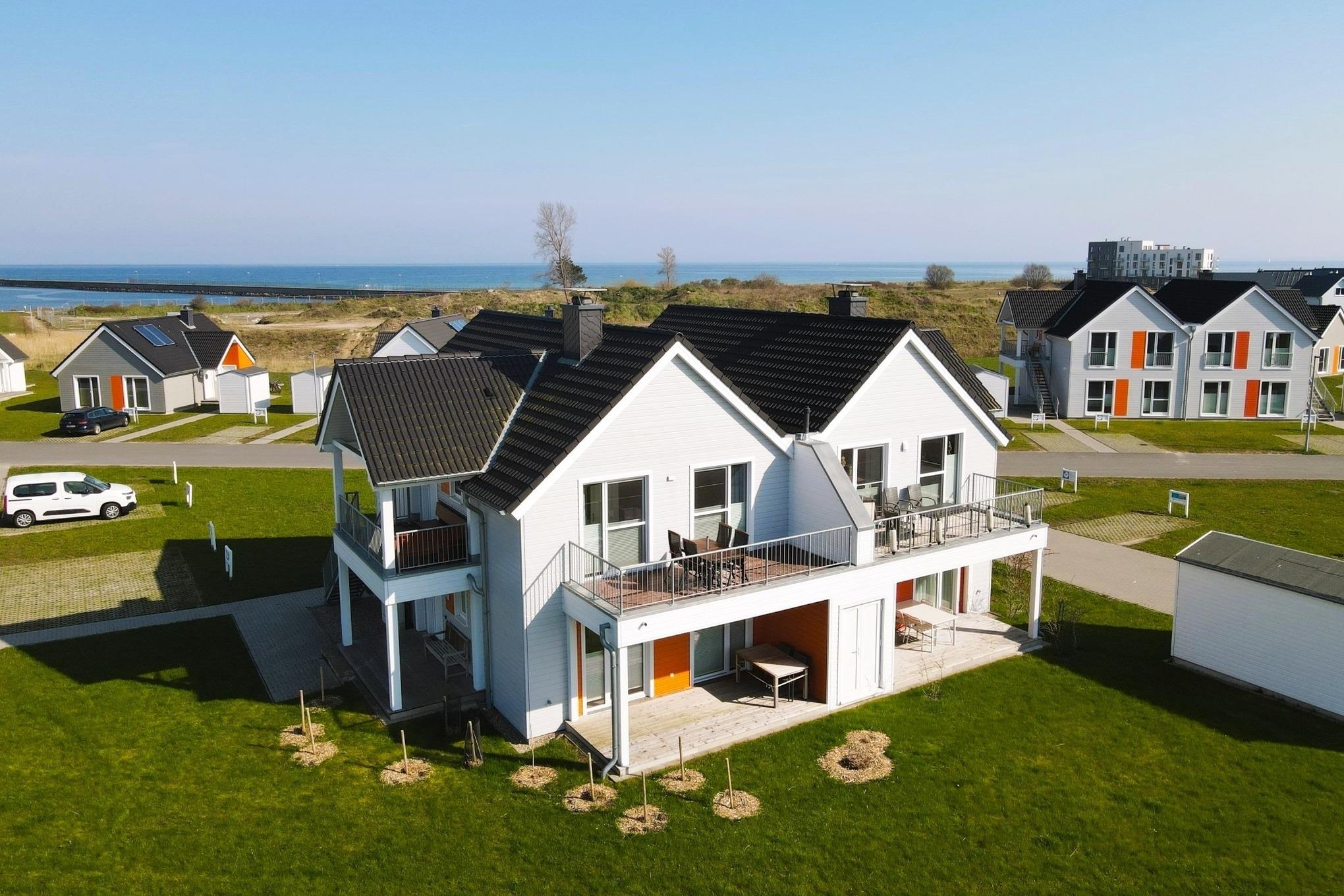Boxspringbett, Kamin , 3 TVs, Sauna, bodengleiche XXL Wellness Dusche, Wasserblick, unmittelbar am Strand und Hafenpromenade, Fahrradschuppen, Grünfläche, 2 Balkone