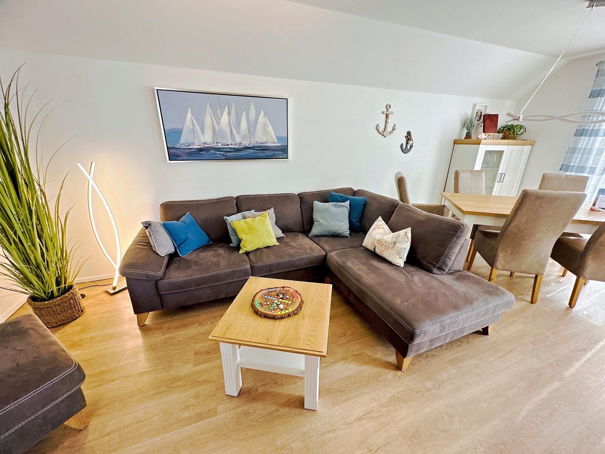 Im Wohn- und Essbereich mit bodentiefen Fenstern können Sie es sich auf dem komfortablen Ecksofa mit Schlaffunktion gemütlich machen und Ihren Lieblingsfilm auf dem 55-Zoll Smart-TV geniesen. Mit Telekom Entertain, Hifi Anlage und kostenfreiem Wlan stehen Ihnen eine Vielzahl von Unterhaltungsoptionen zur Verfügung.