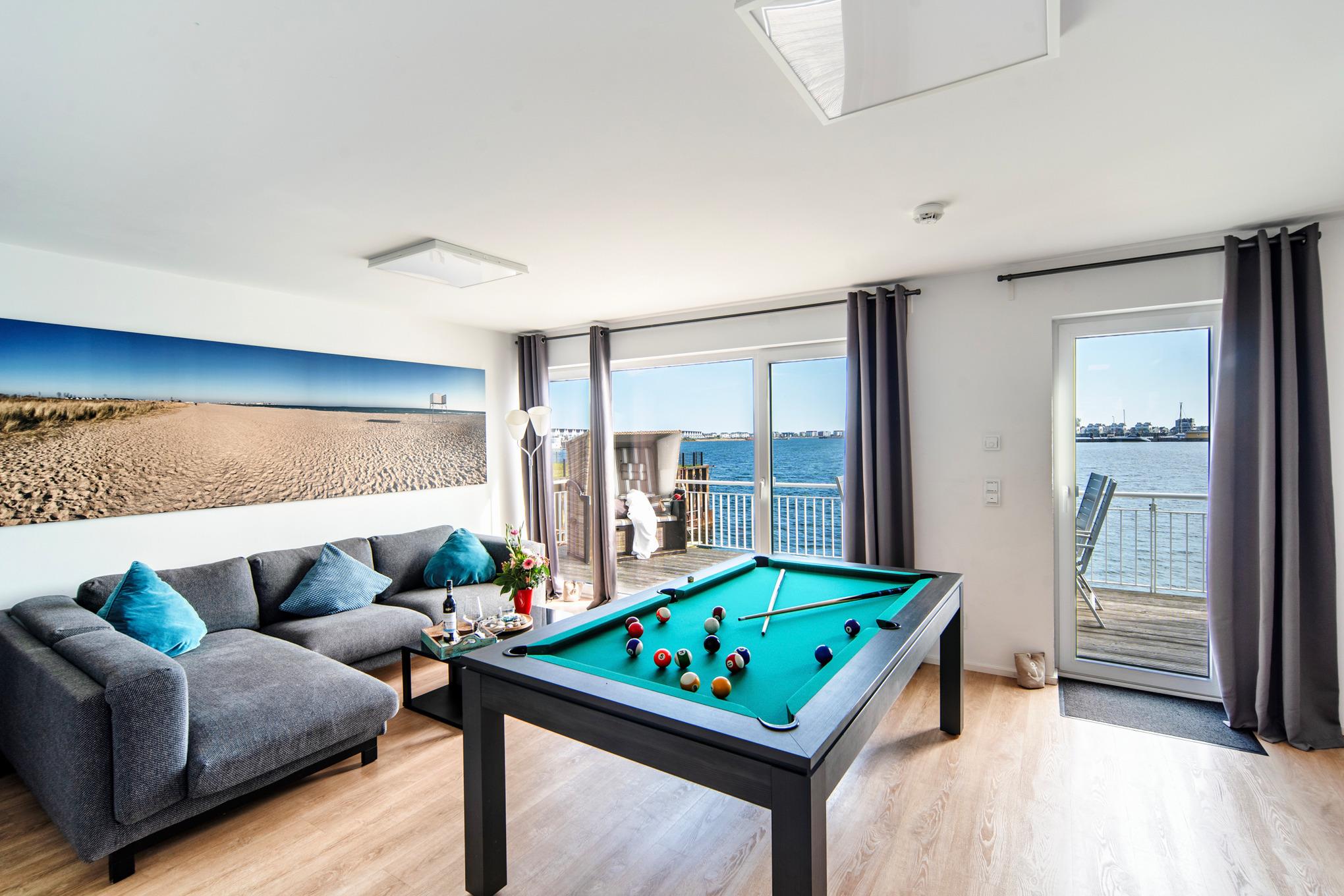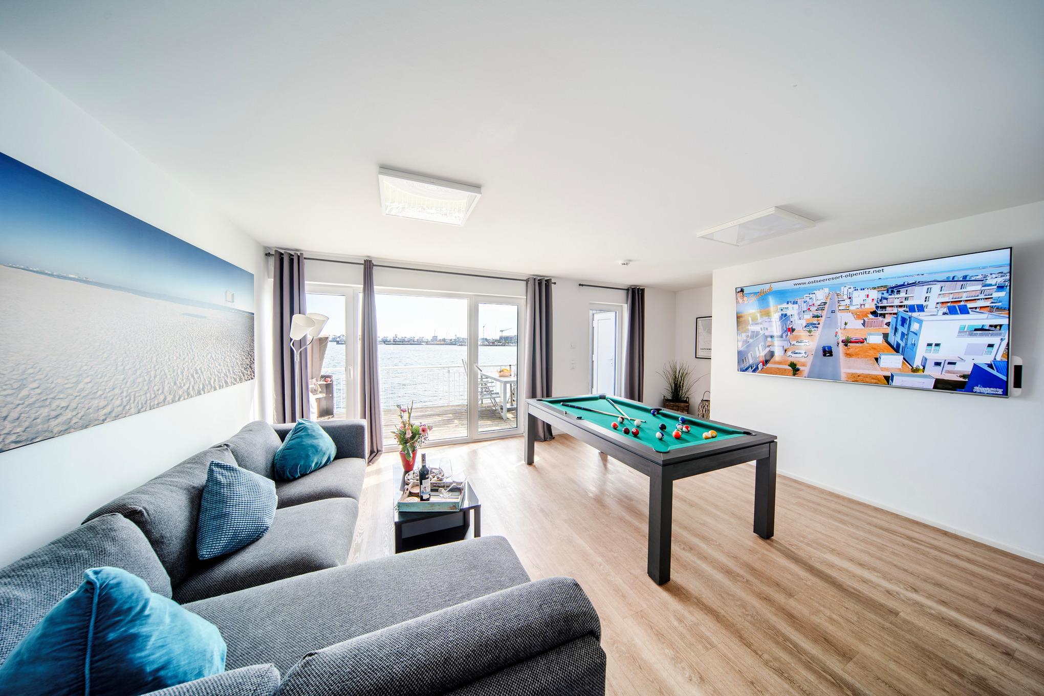 Bei der Schleivilla Hafenmeister" handelt es sich um eine exclusive Doppelhaushälfte mit 127 qm Wohnfläche, verteilt auf drei Etagen und ideal für 2-6 Personen. Billardtisch, Kicker.