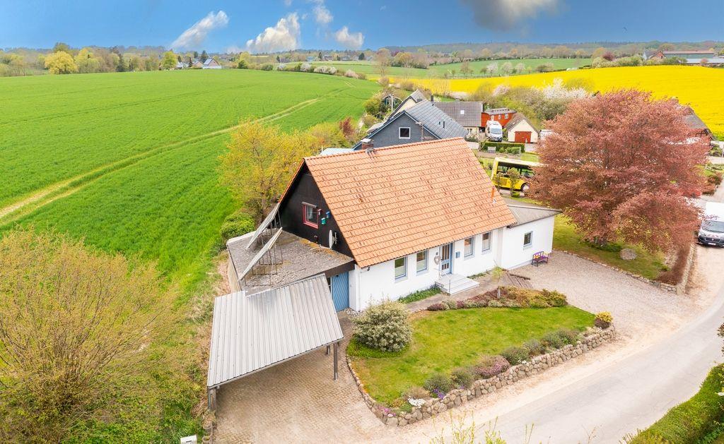 Gemütliches Ferienhaus Uwe's Huus in ländlicher Lage bei Kappeln mit Garten und Terrasse.
