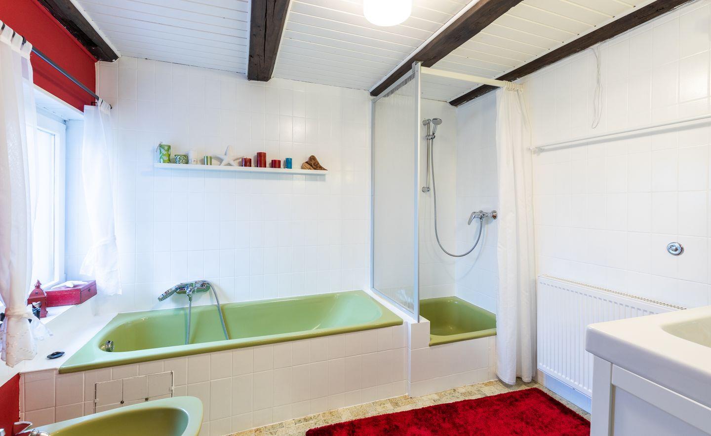 Im Erdgeschoss des Hauses liegt der Wohn- und Essbereich, ein Badezimmer mit Badewanne und Dusche, ein Hauswirtschaftsraum, sowie die Küche.