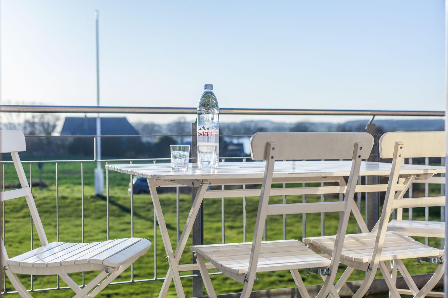 Auf dem schönen möblierten Balkon können Sie die Sonnenstrahlen des Tages einfangen. Von hier aus haben Sie einen schönen Ausblick auf die grüne Landschaft.