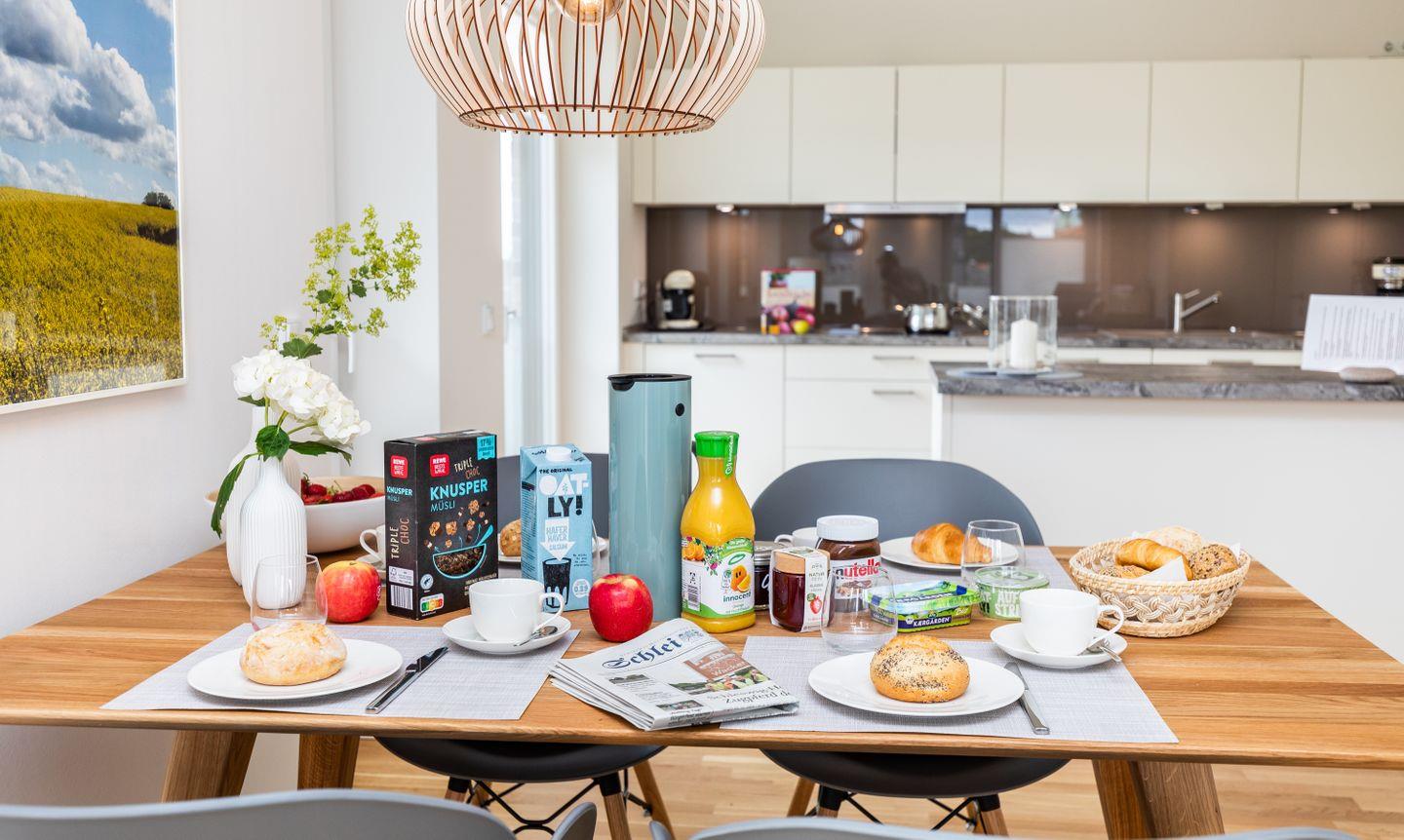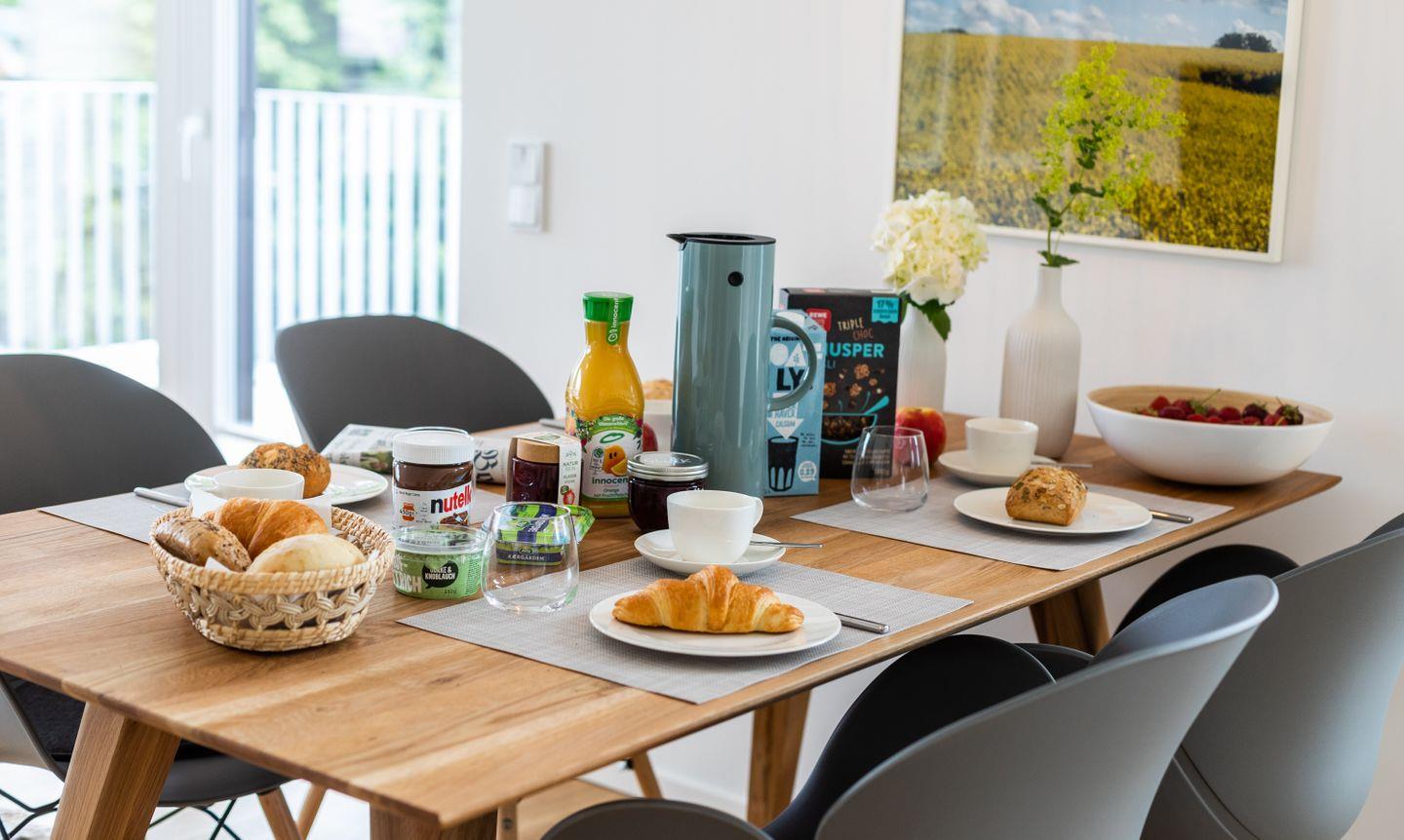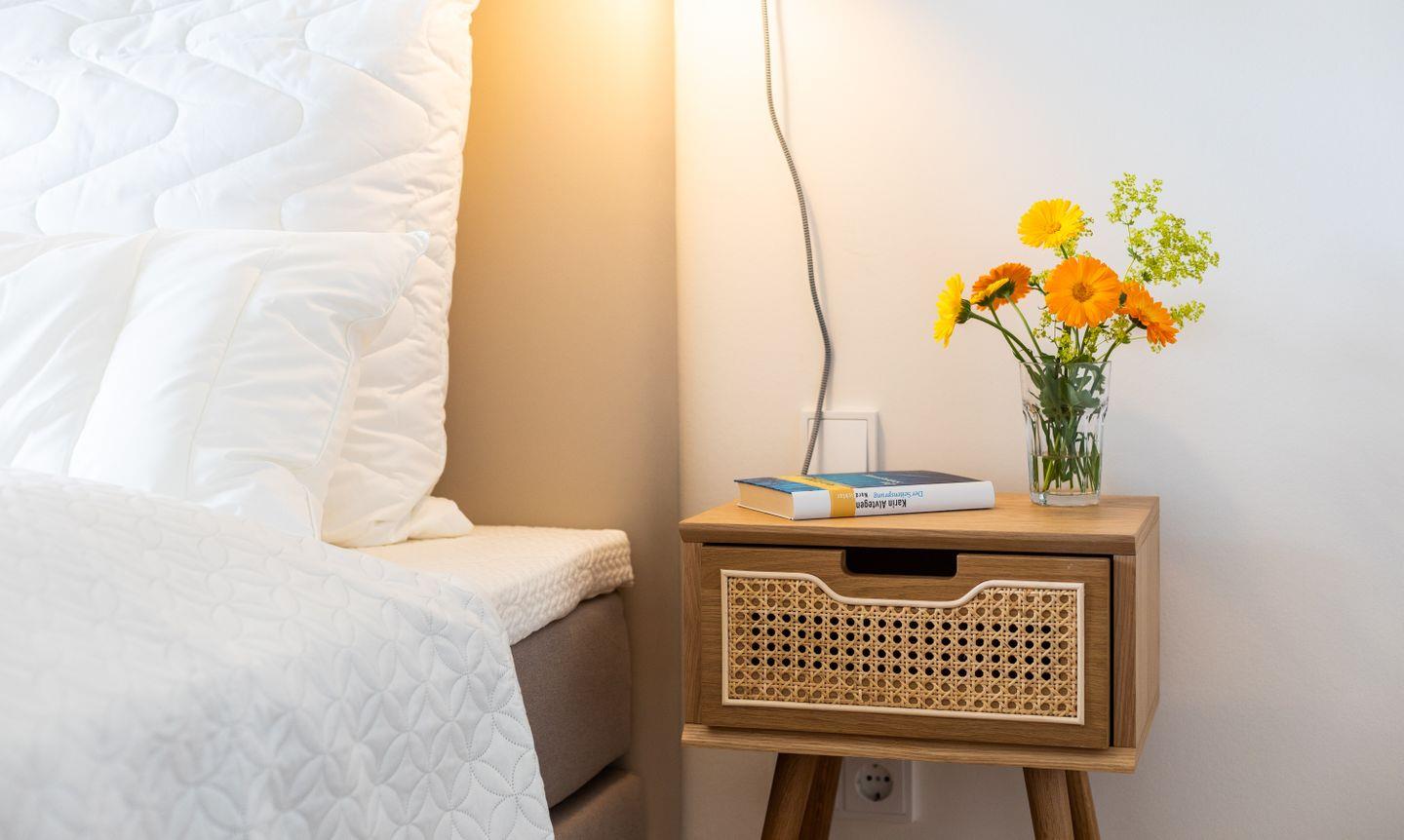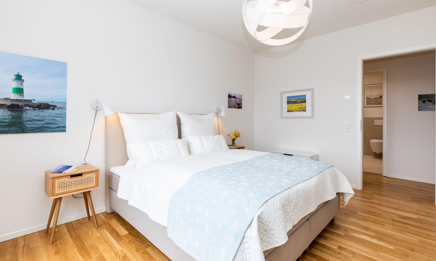 Beide Schlafzimmer der Wohnung sind mit Boxspringbetten der Größe 180x200 cm und 90x200 cm ausgestattet und bieten darüber hinaus geräumige Kleiderschränke. Das Einzelbettschlafzimmer verfügt außerdem über einen Schreibtisch, für beispielsweise Home-Office-Arbeiten. Wäschepakete (Bettbezüge und Handtücher) sind optional gegen Gebühr dazu buchbar