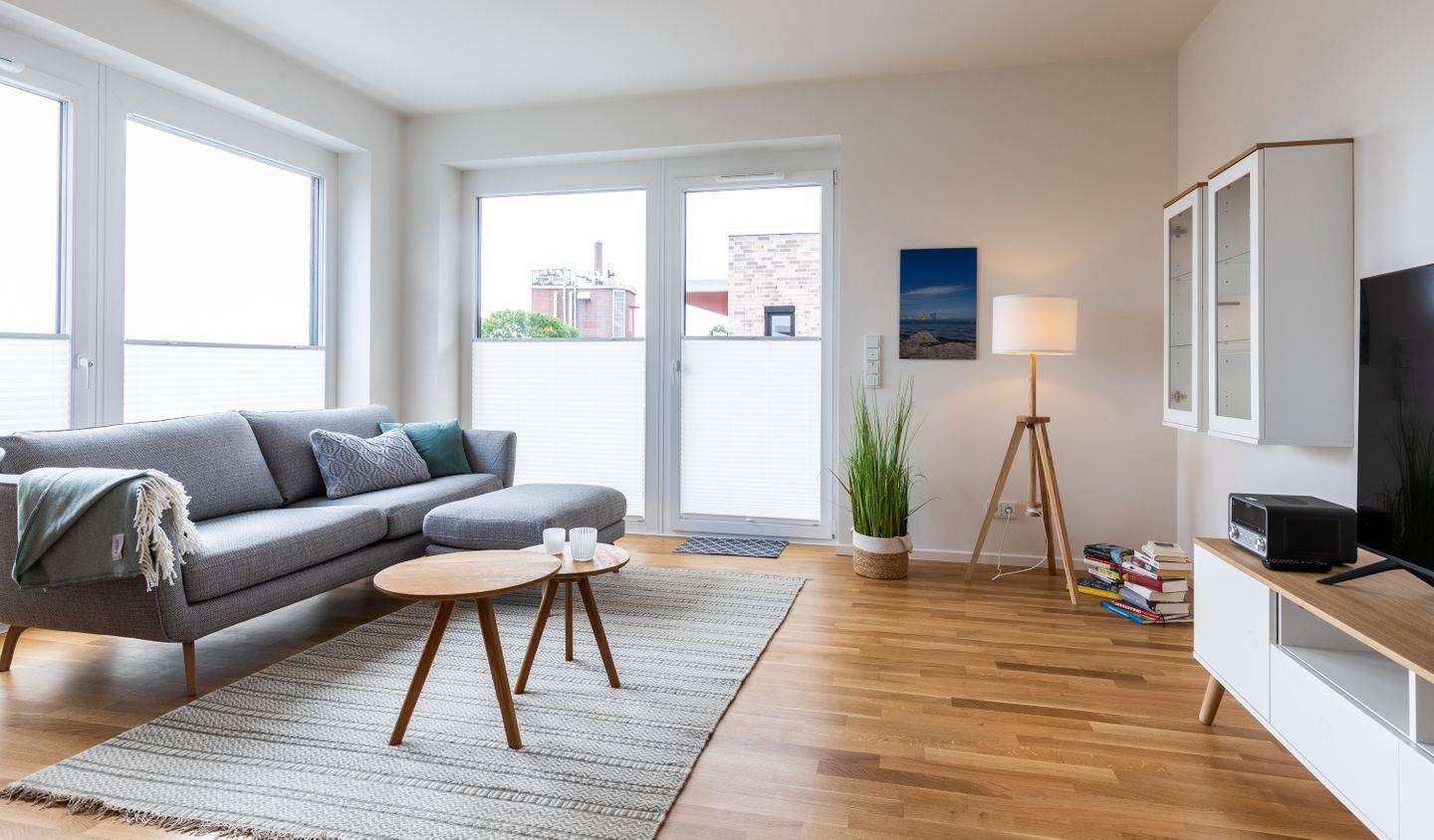 Exklusive Penthouse-Wohnung in Kappeln mit Meerblick, moderner Küche und Balkon, ideal für entspannte Tage direkt am Wasser.