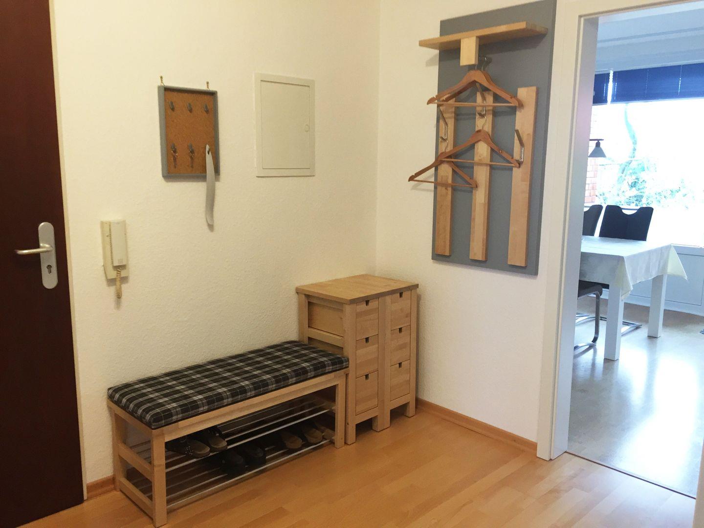 Von dem Flur haben Sie Zugang zur Küche, Schlafzimmer, Badezimmer, sowie Wohn- und Essbereich.