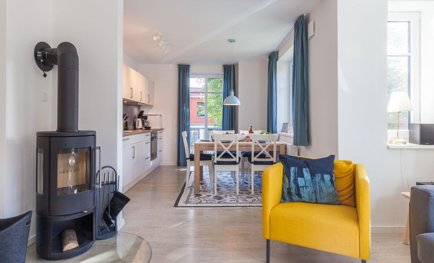 Moderne Erdgeschosswohnung in Kappeln mit Kamin, Terrasse und gemeinschaftlichem Garten – ideal für Erholung und Aktivurlaub.