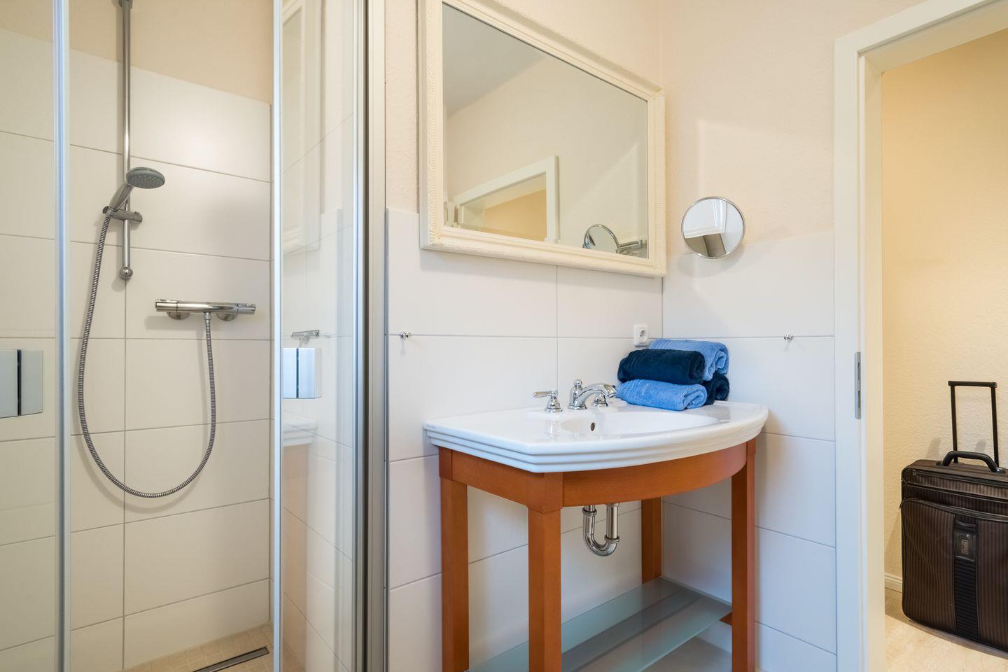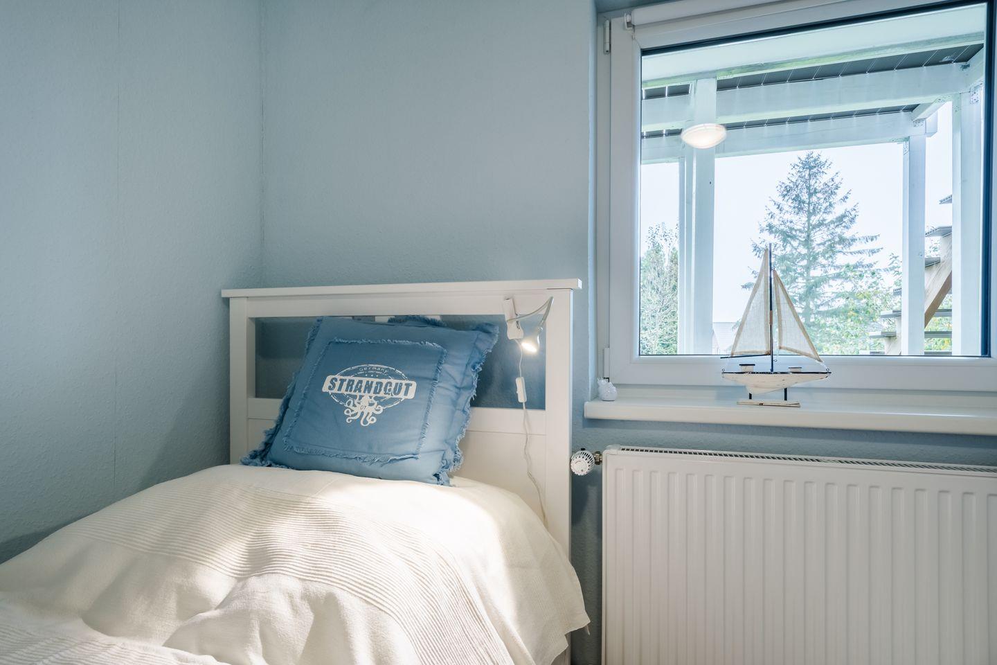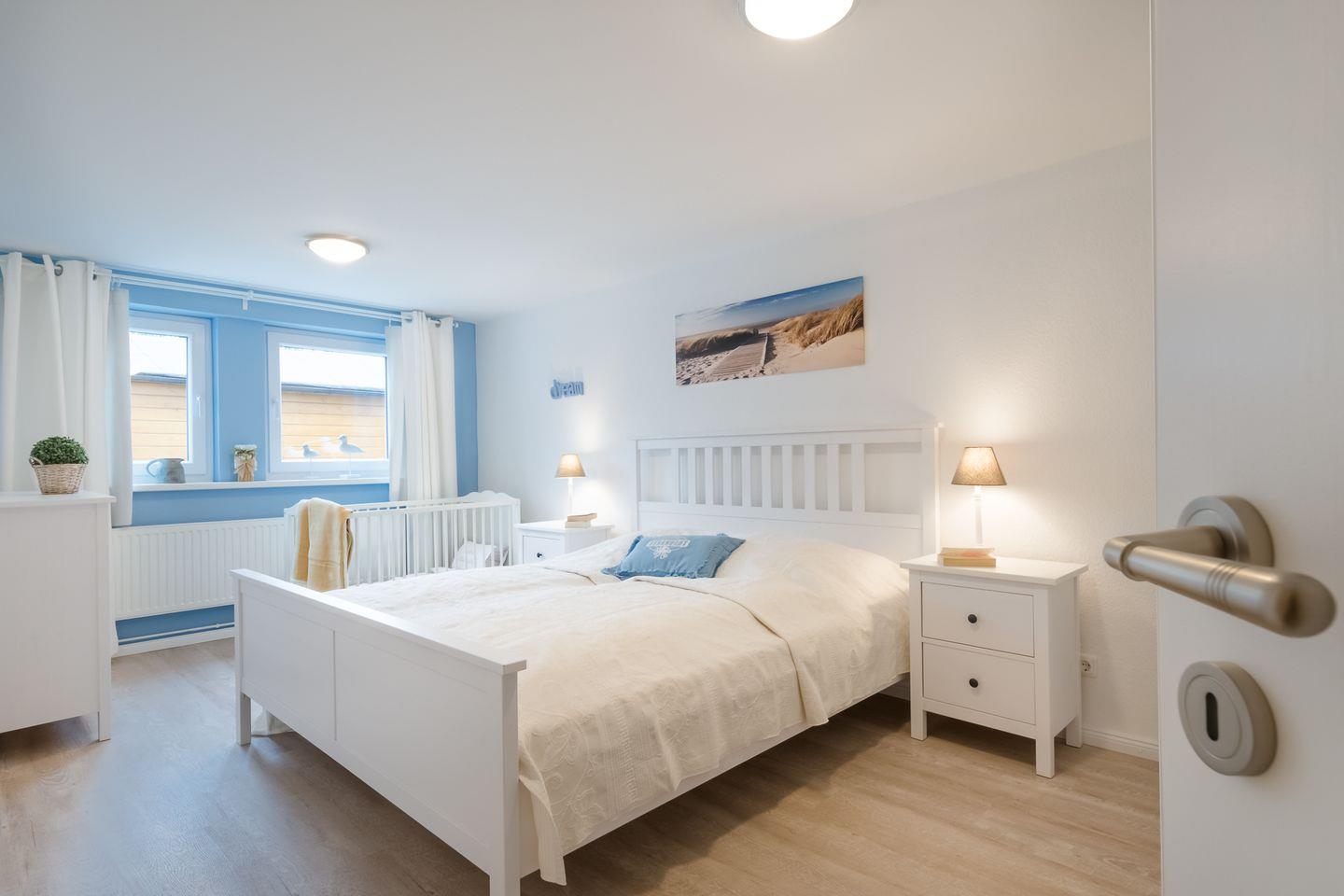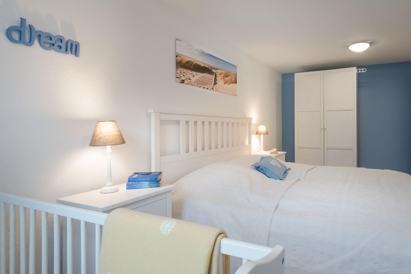 Die Ferienwohnung befindet sich im Souterrain mit separatem Eingang und teilt sich auf in ein gemütliches Wohn-/ Esszimmer mit offener Küche (Ceranfeld, Geschirrspüler) und Terrassenzugang, ein Schlafzimmer mit einem Doppelbett (2x 90x200cm) inklusive TV, ein Schlafzimmer mit 2 Einzelbetten (jeweils 90x200 cm), ein Schlafzimmer mit Etagenbett (jeweils 90x200 cm), ein modernes Duschbad und ein zusätzliches Gäste-WC.
