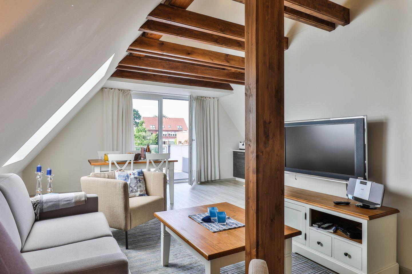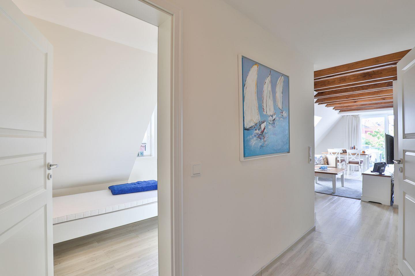 Die 75qm Wohnung befindet sich im Obergeschoss des Hauses und verfügt über drei stilvoll eingerichtete Zimmer.