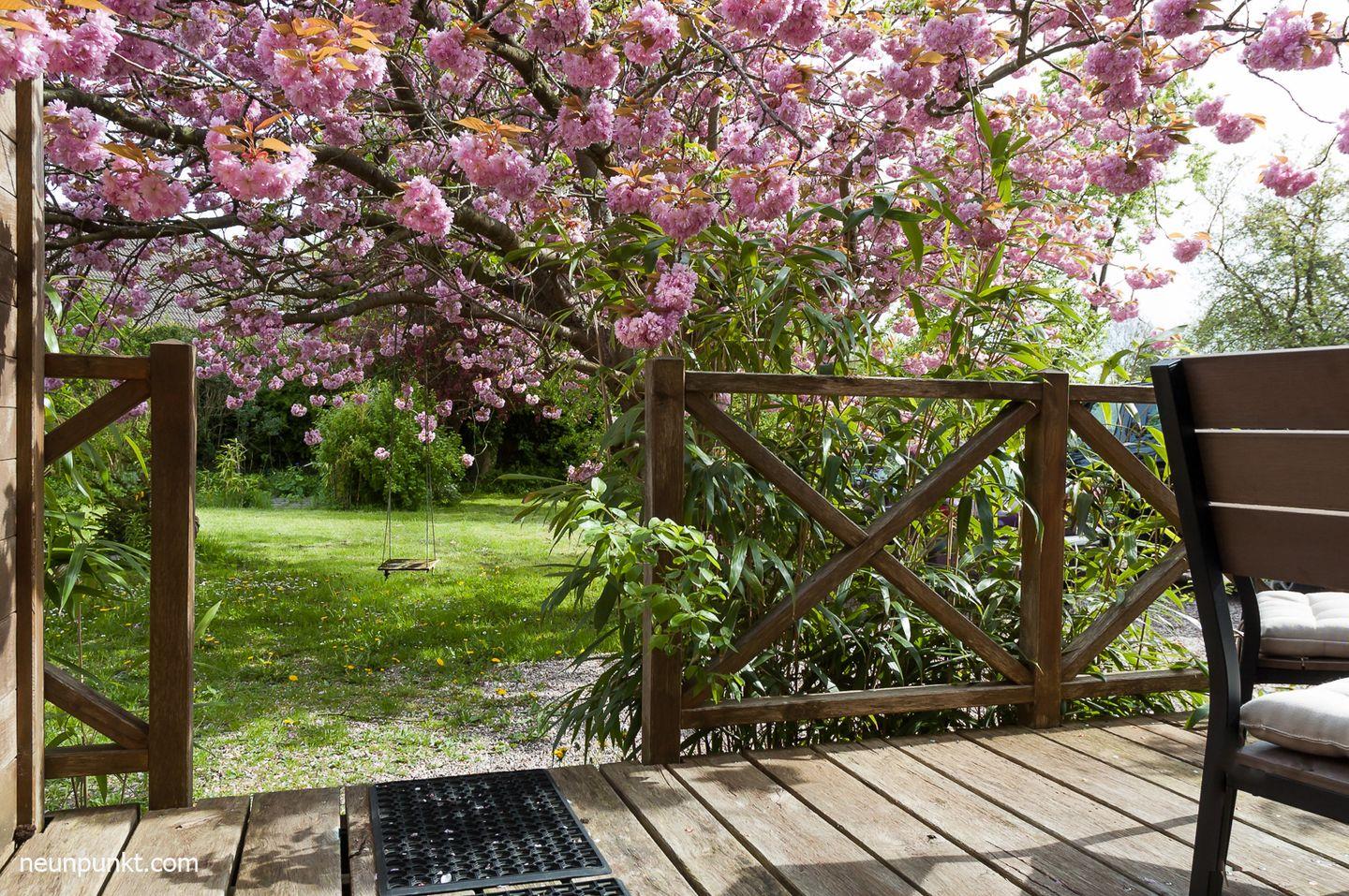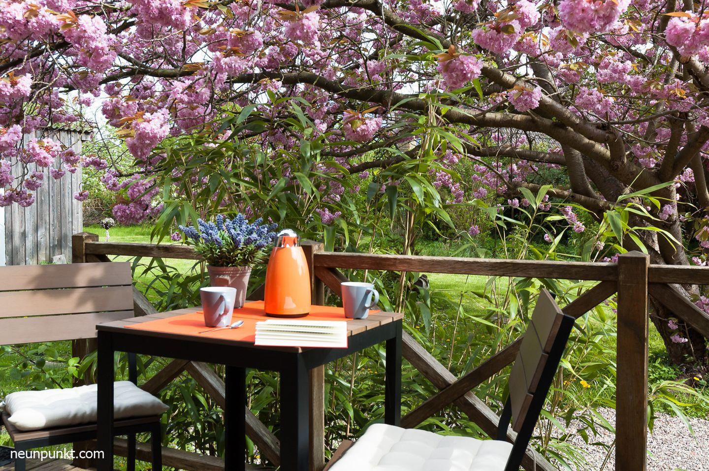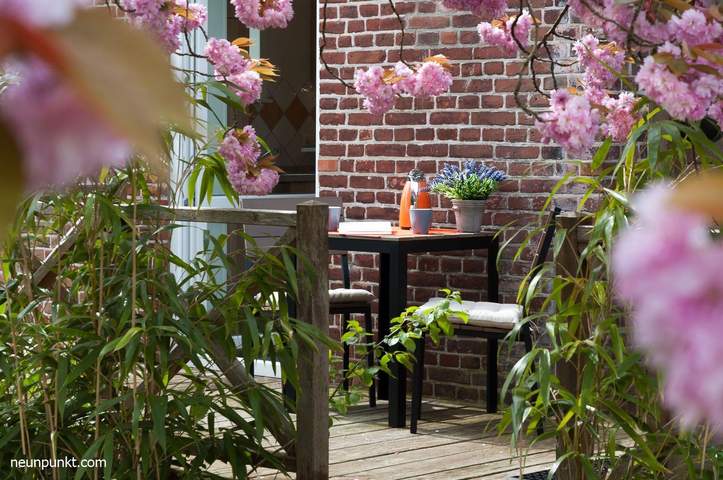 Eine kleine Terrasse mit Gartenmöbeln und Grill garantieren Erholung pur.