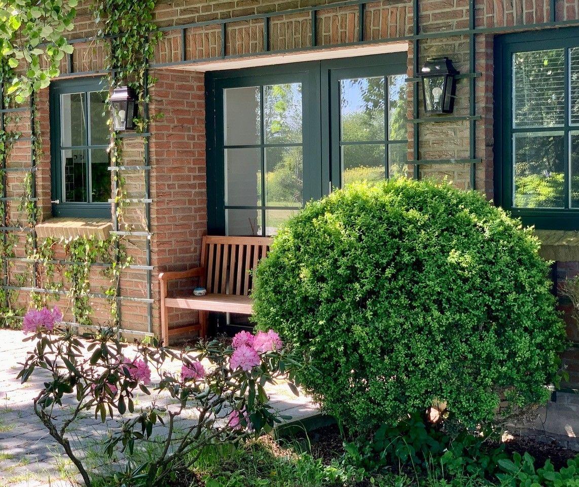 Durch den Eingangsbereich gelangen Sie in den großen Garten und auf die sonnige Terrasse mit Grill.