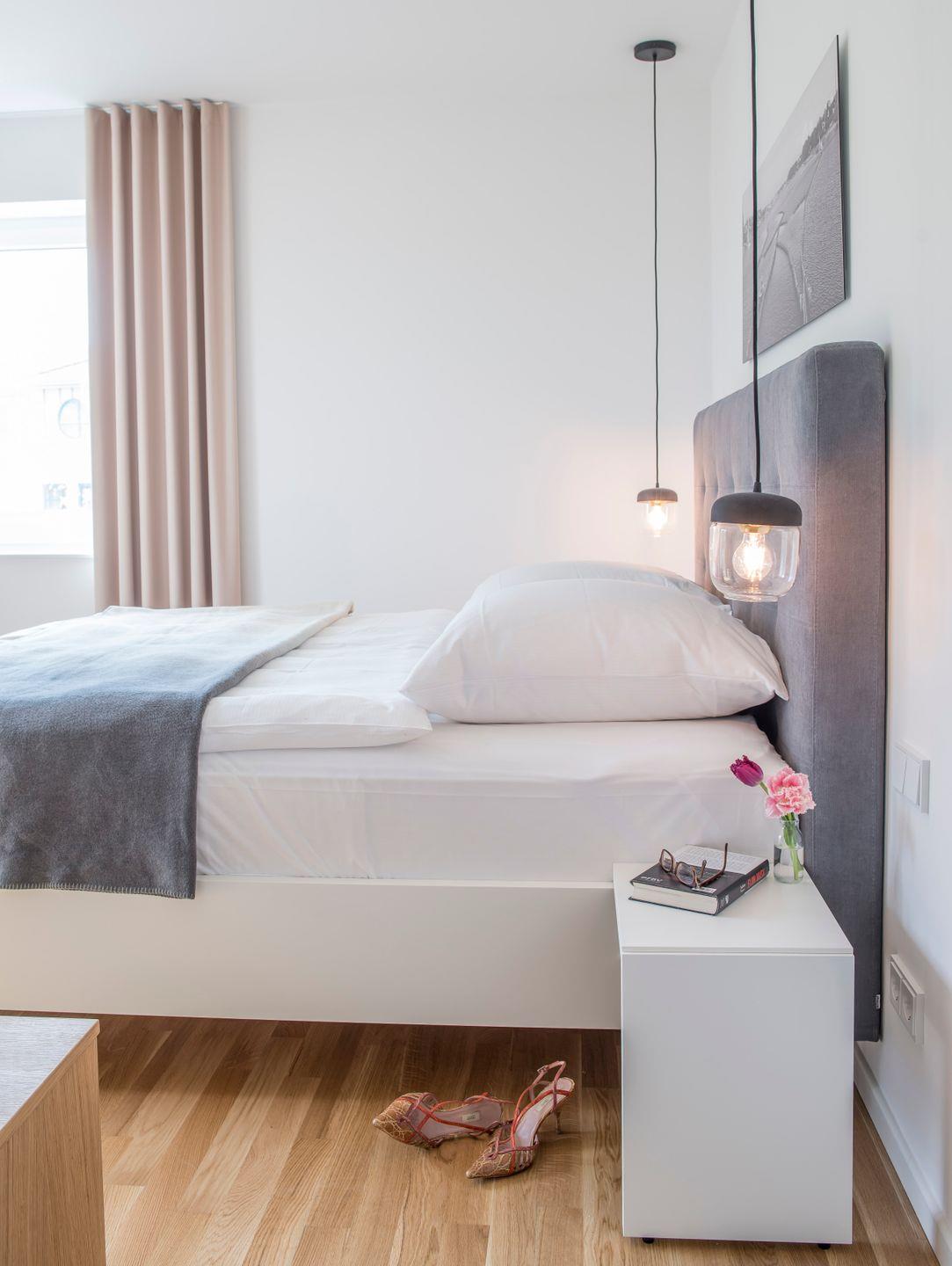 Die individuell eingerichtete Wohnung hat zwei geschmackvoll eingerichtete Schlafzimmer, die mit einem Doppelbett und Matratzen der Größe 2x 90x200 cm, sowie einem Boxspringbett der Größe 140x200 cm eingerichtet sind.