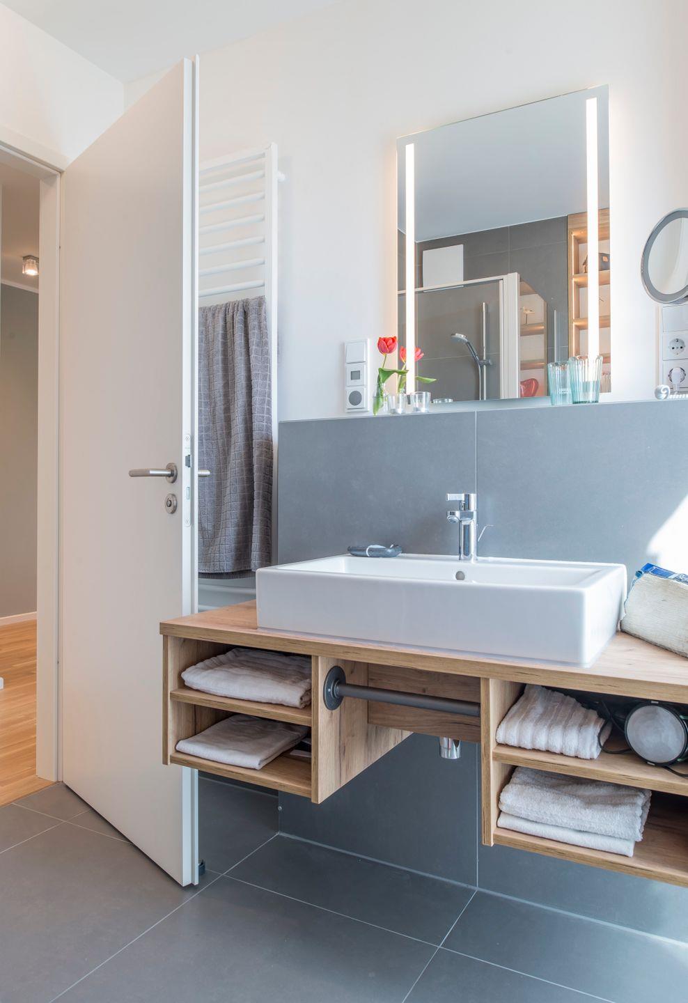 Das Tageslichtbadezimmer, mit Blick auf den kleinen benachbarten Park, verfügt über eine ebenerdige Dusche.