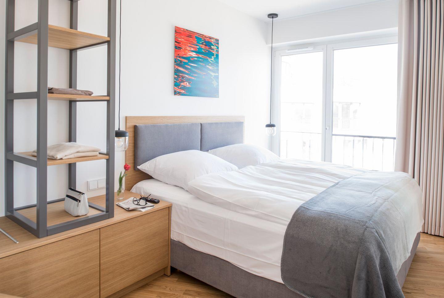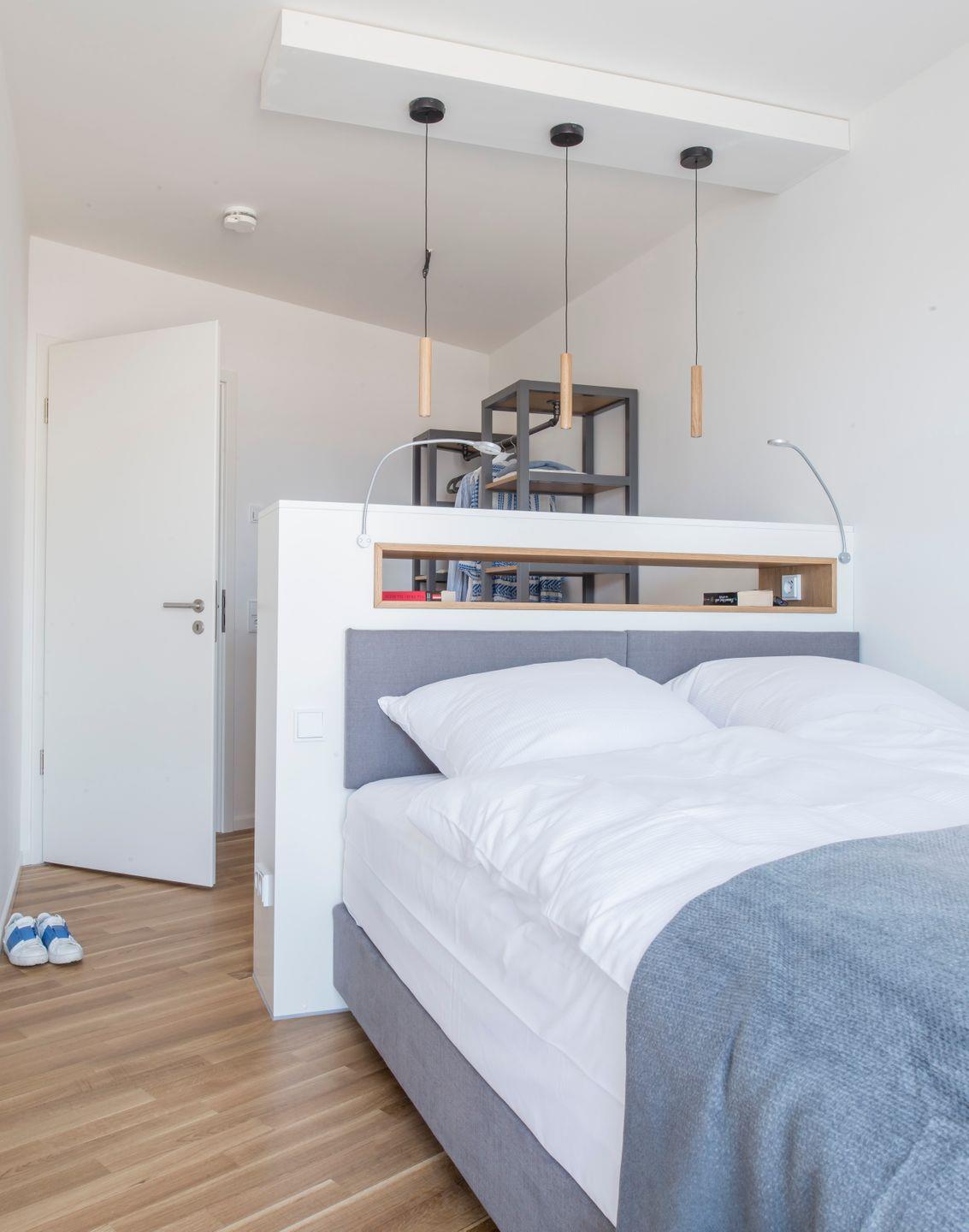 Platz für vier Personen bieten die modern eingerichteten Schlafzimmer mit Boxspringbetten (180x200 cm) und (160x200 cm).