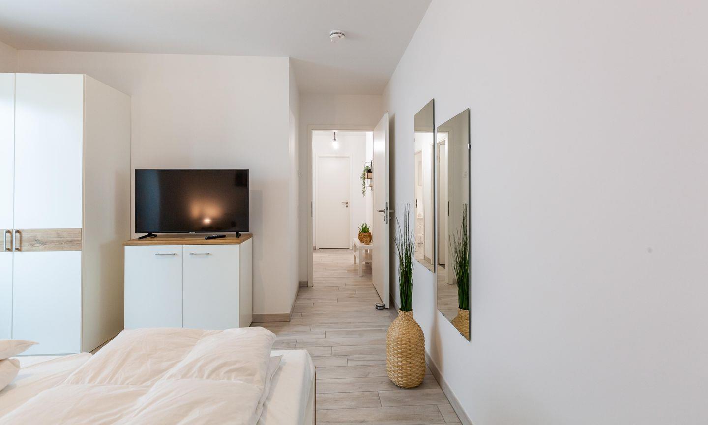 Die Wohnung verfügt über zwei geschmackvoll eingerichtete Schlafzimmer mit einem Doppelbett der Größe 180x200 cm und einem Ausziehbett der Größe 80x200 cm.