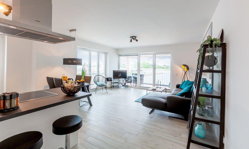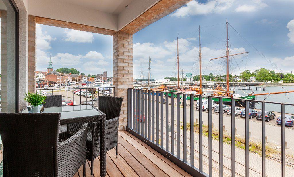 Elegante Ferienwohnung Schleibrise mit Schleiblick und Balkon im Speicherquartier von Kappeln.