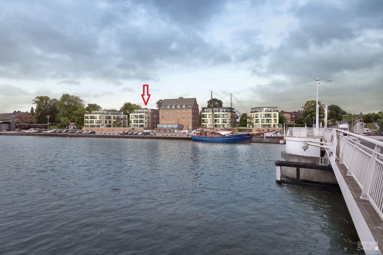 Moderne Ferienwohnung mit Seeblick, Balkon und Aufzug direkt an der Hafenpromenade in Kappeln.