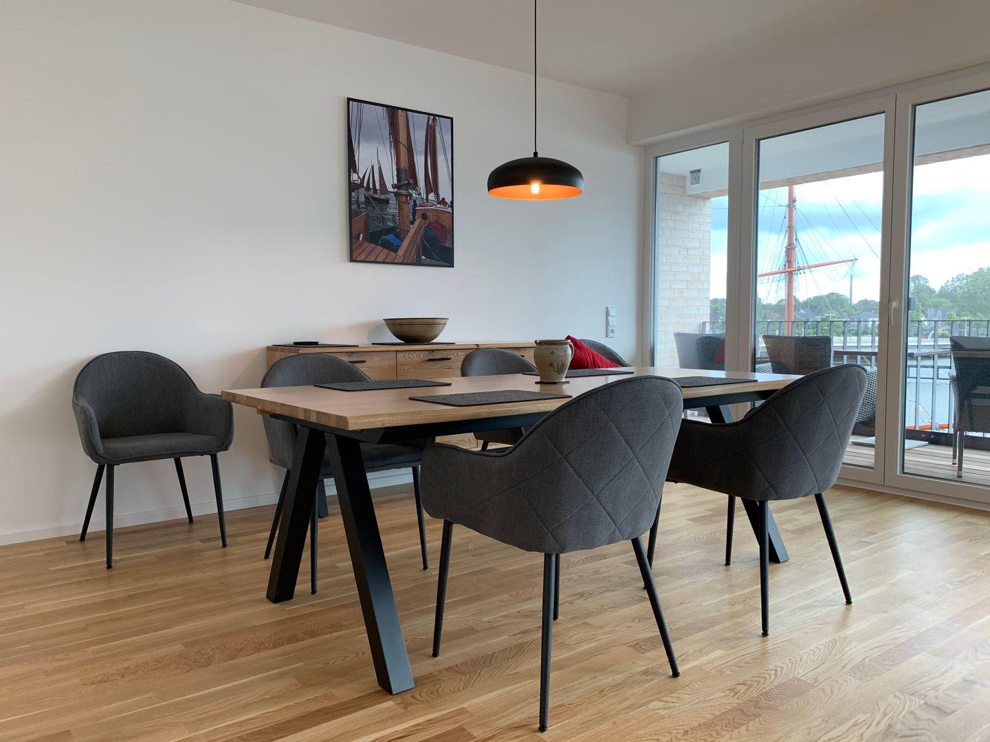 Zudem befindet sich hier der Zugang zum Balkon, welcher einen uneingeschränkten Blick auf die schöne Schlei ermöglicht.