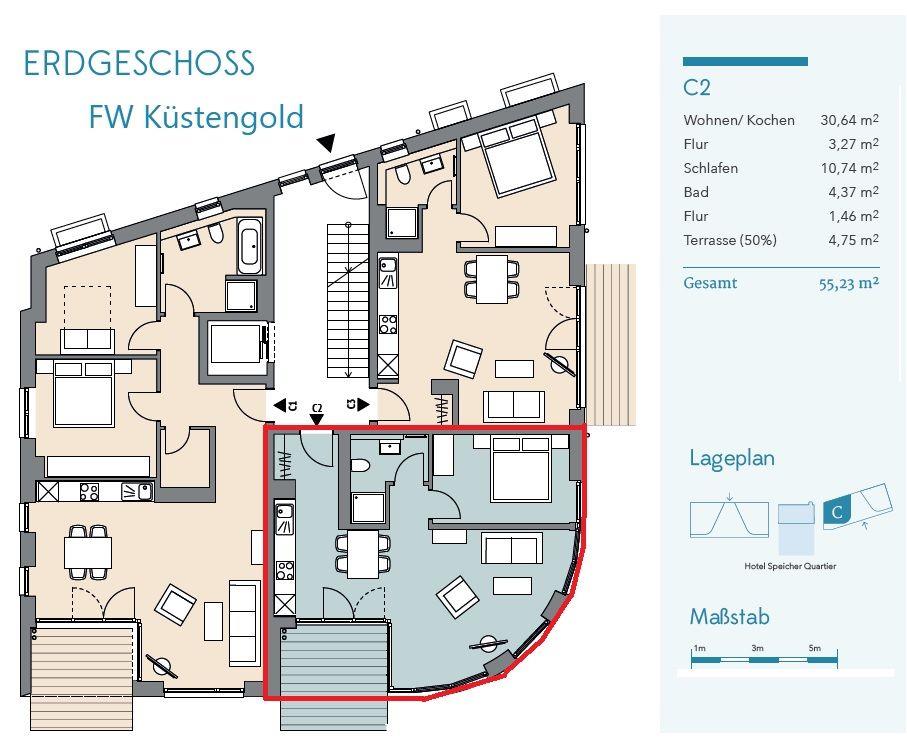 Moderne Ferienwohnung Küstengold mit Seeblick