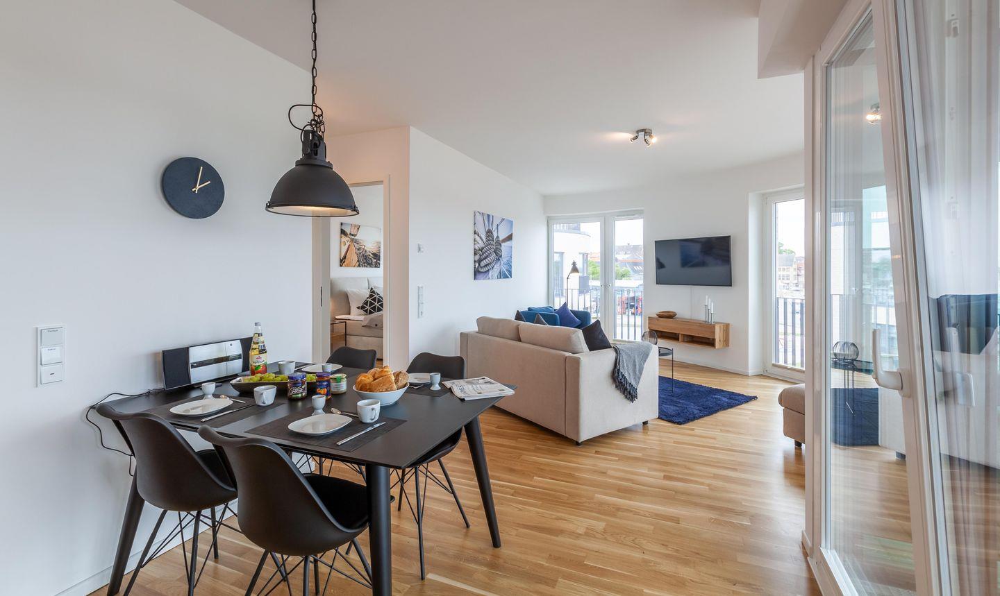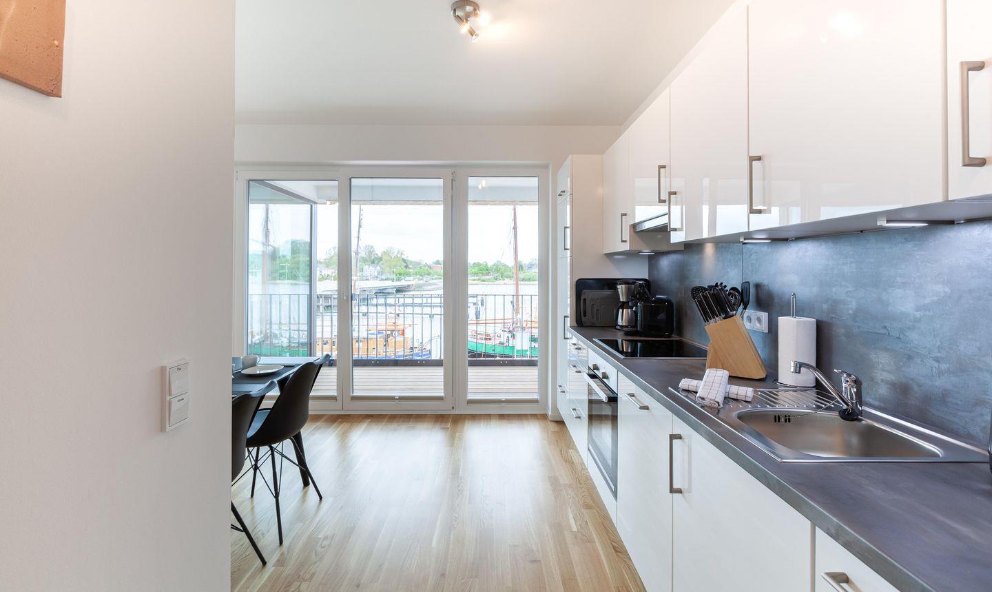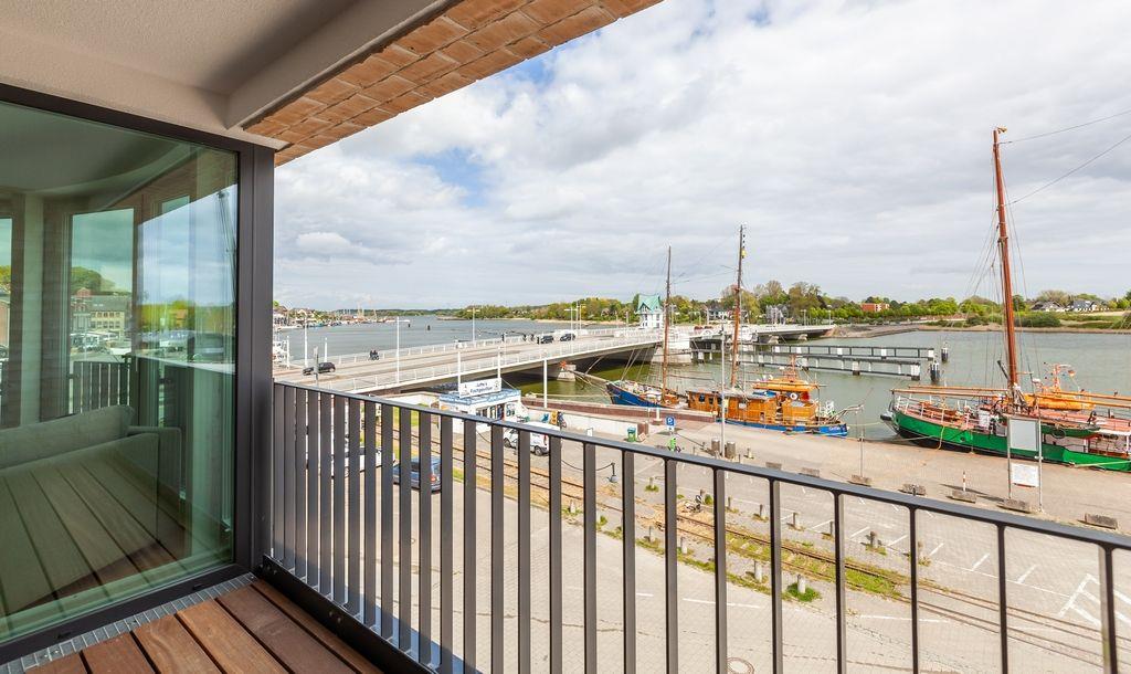 Moderne Ferienwohnung mit Seeblick, Balkon und stilvoller Einrichtung direkt an der Hafenpromenade in Kappeln.