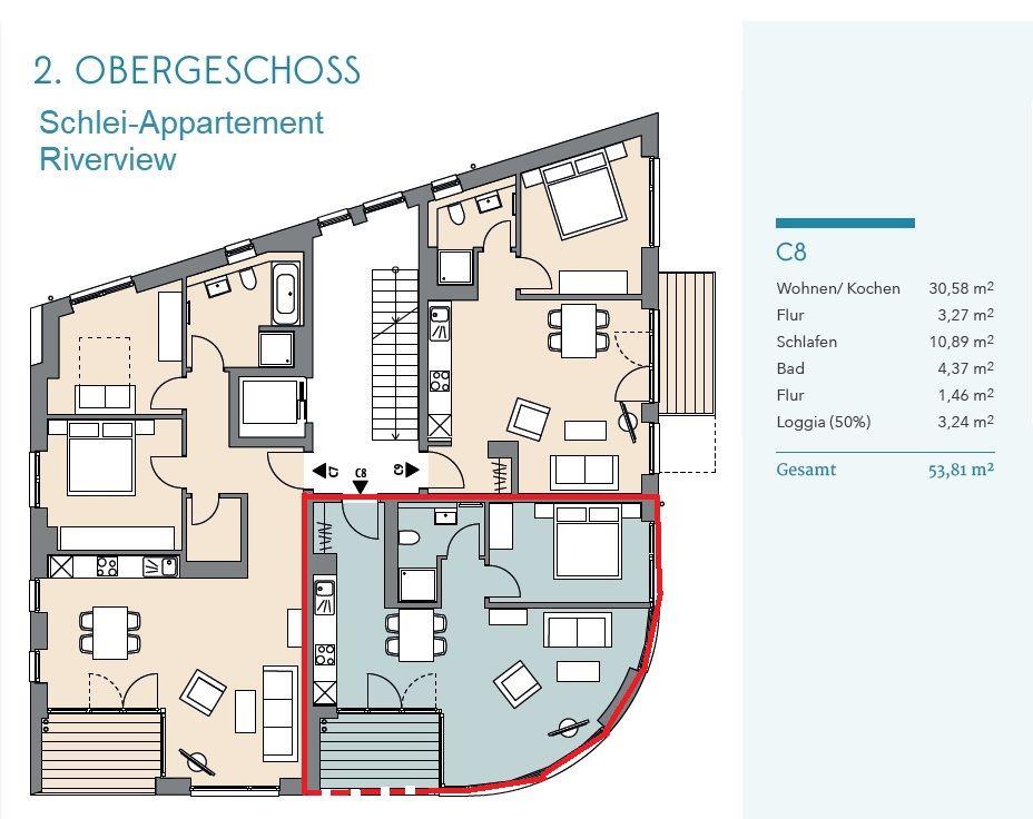 Die Ferienwohnung „Schlei-Appartement Riverview“ liegt direkt an der schönen Hafenpromenade von Kappeln und bietet eine unmittelbare Nähe zum Zentrum der Kleinstadt.