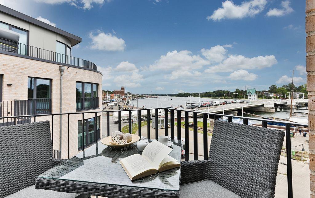 Charmante Ferienwohnung Waterkant mit Hafenblick und Balkon in Kappeln, ideal für entspannte Tage an der Ostsee.