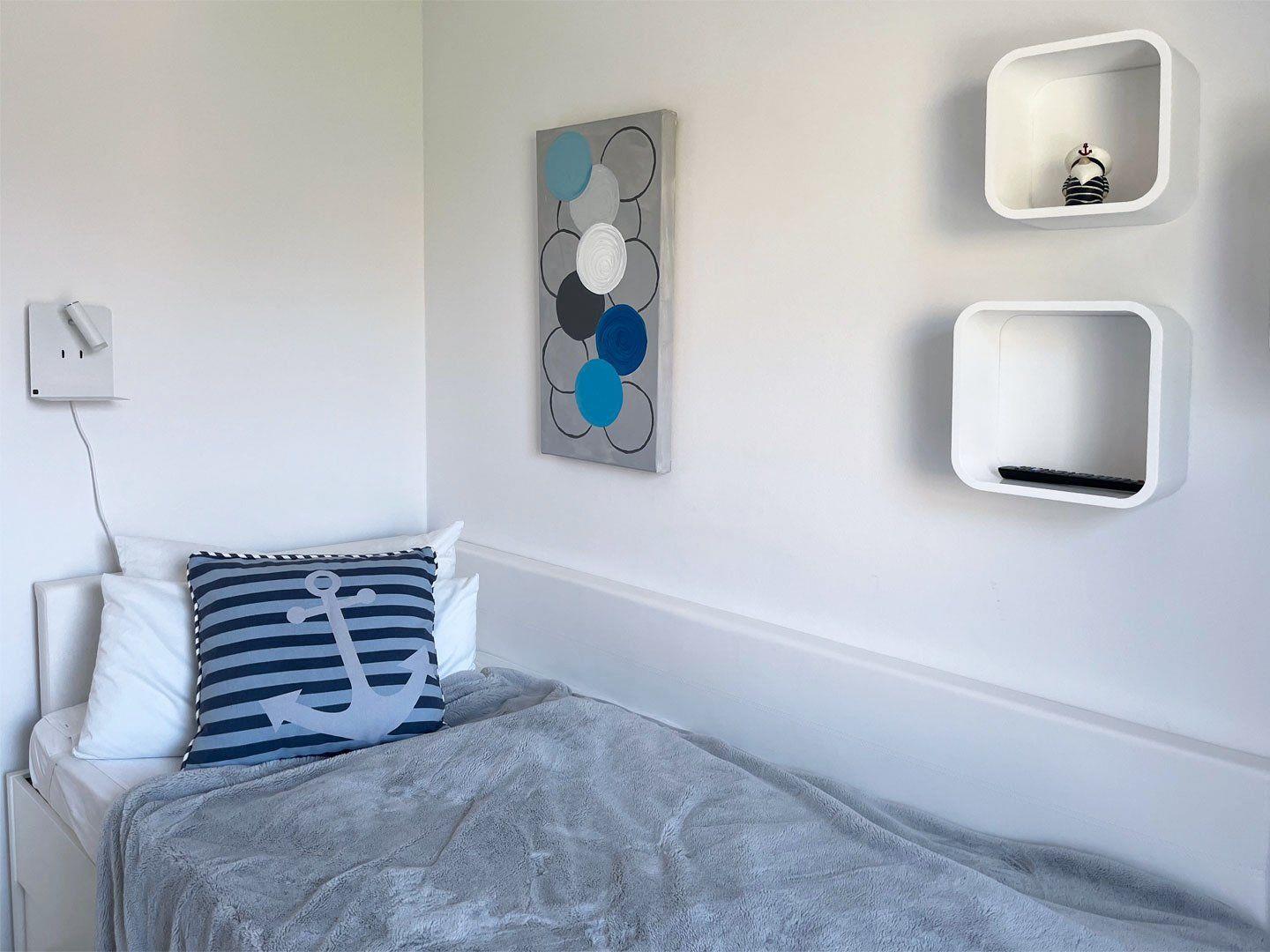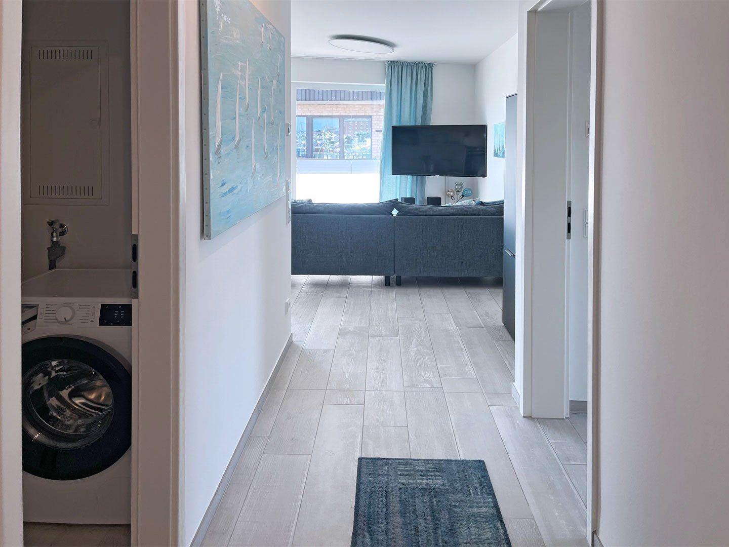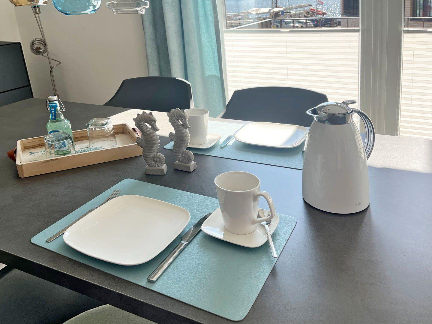Sie bietet eine moderne maritime Einrichtung für einen entspannten Aufenthalt.