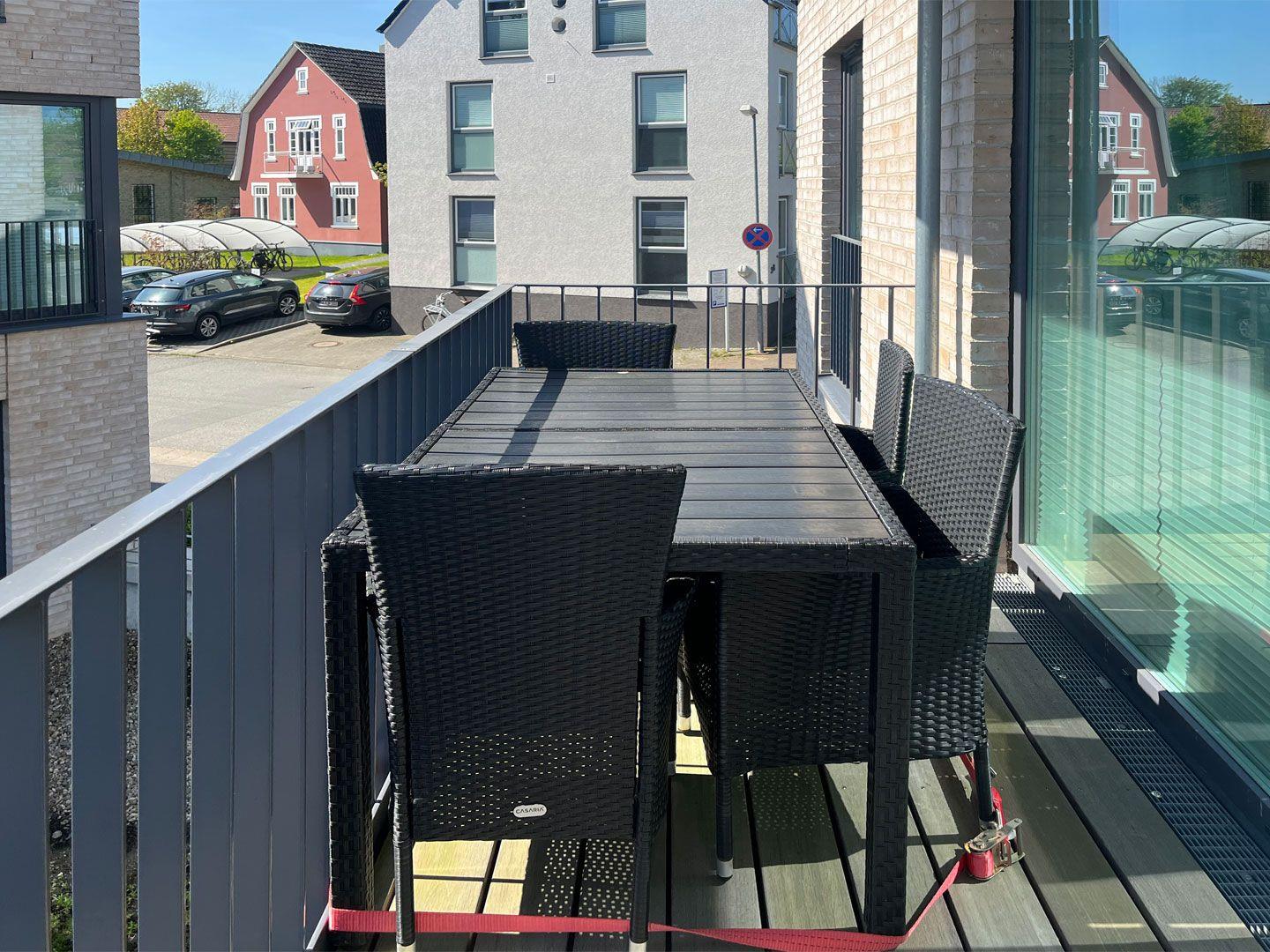 Der Balkon, welcher über den Wohn-/ Essbereich zu erreichen ist, verfügt über Gartenmöbel.