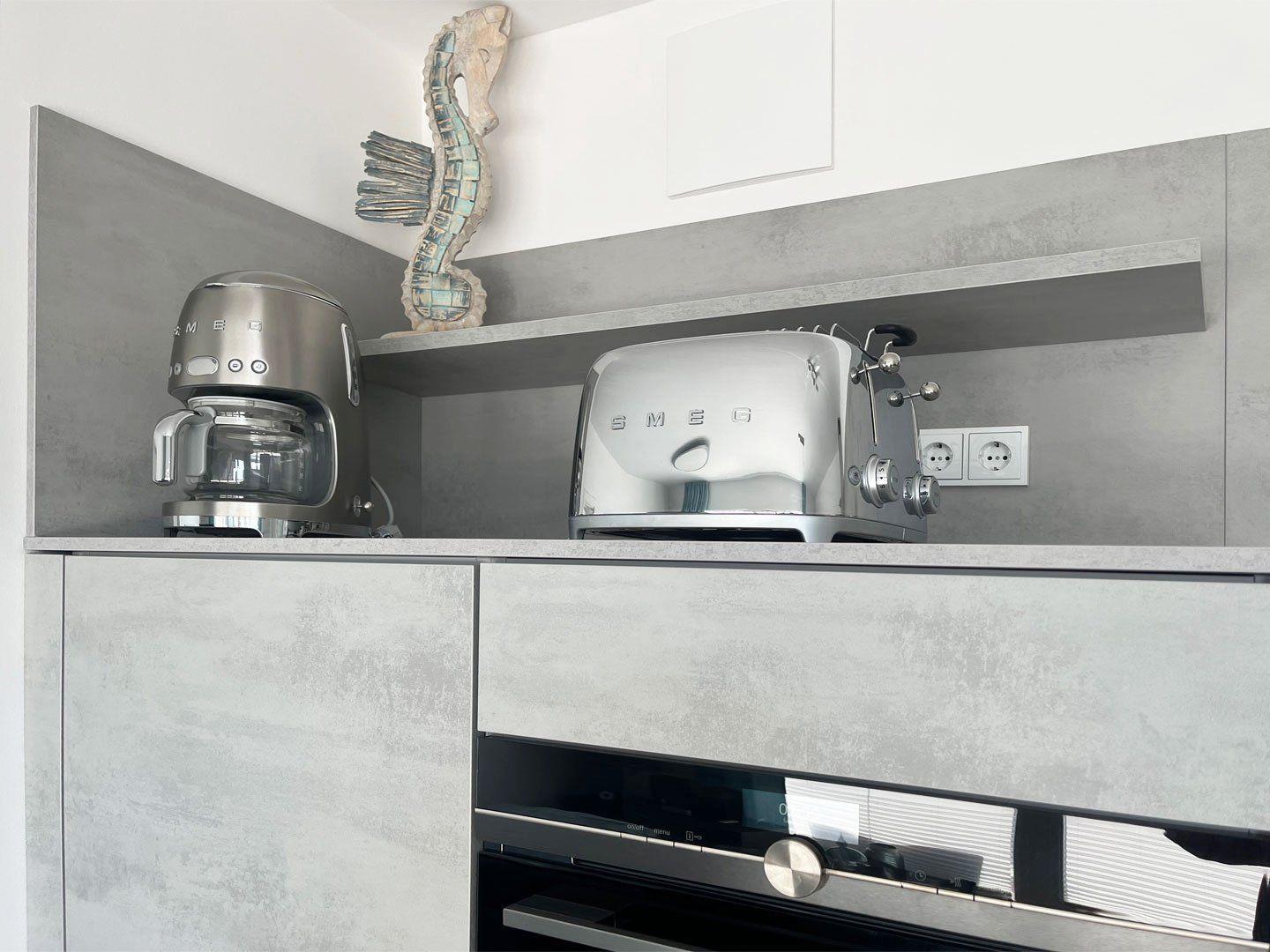 Der großzügige Wohn-/ Essbereich ist mit einer modernen Design-Küche und gemütlichen Sitzmöglichkeiten ausgestattet.