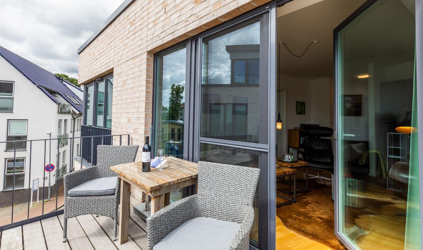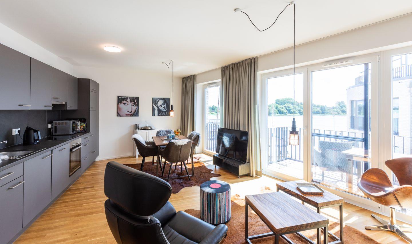 Elegante Ferienwohnung Lindenberg in Kappeln mit Hafenblick und Balkon, moderne Ausstattung und zentrale Lage am Südhafen.