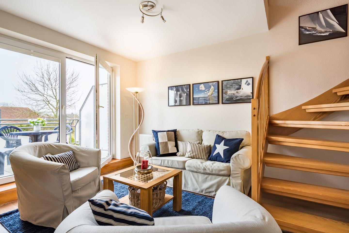 Die sich über 2 Etagen erstreckende Ferienwohnung ist modern eingerichtet und bietet Ihnen einen schönen Balkon und einiges an Komfort für einen erholsamen Urlaub!