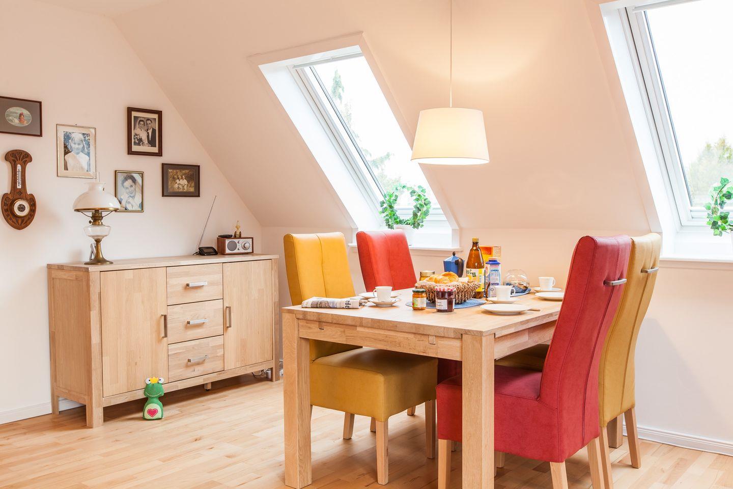 Diese Ferienwohnung befindet sich im Dachgeschoss eines Zweifamilienhauses.