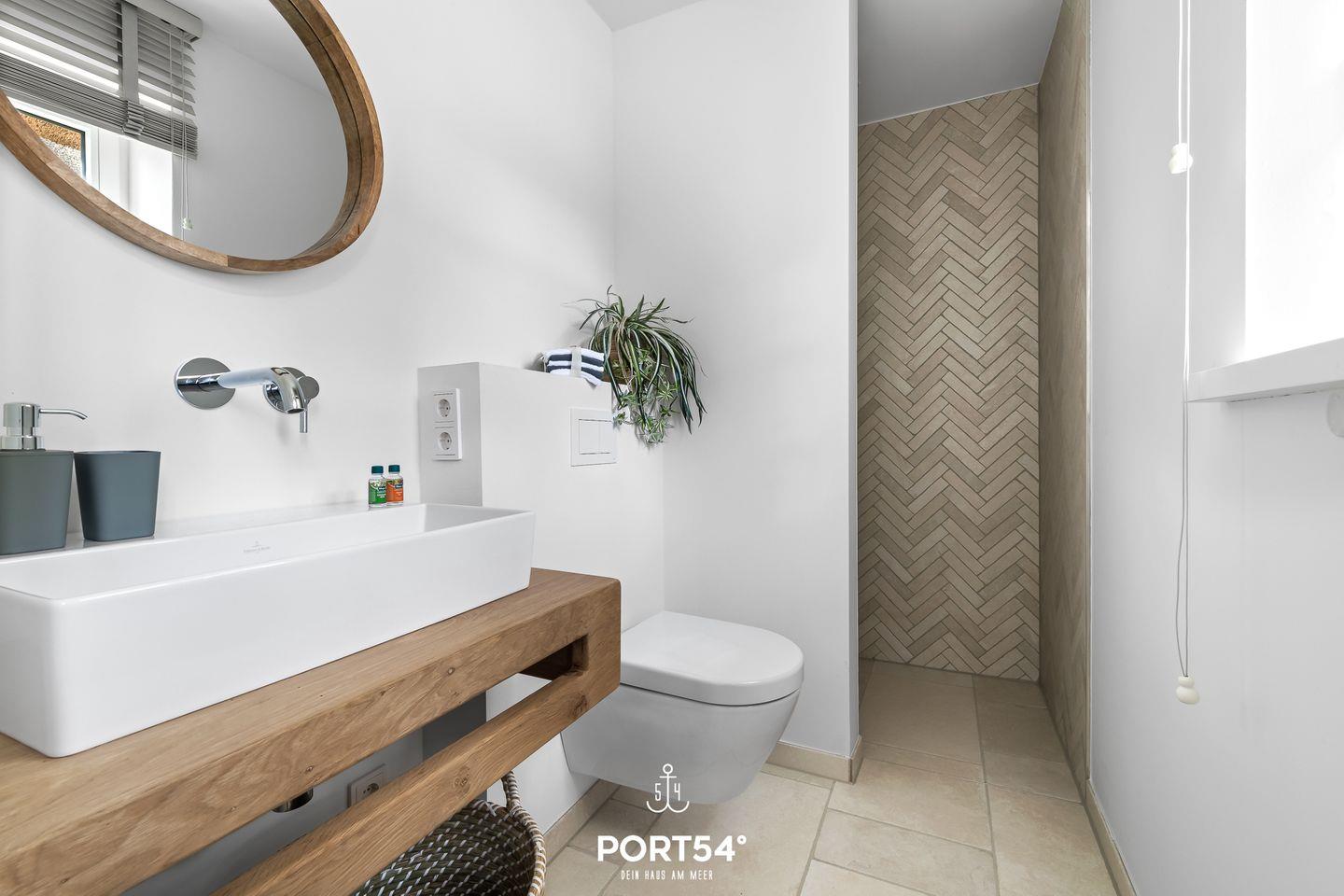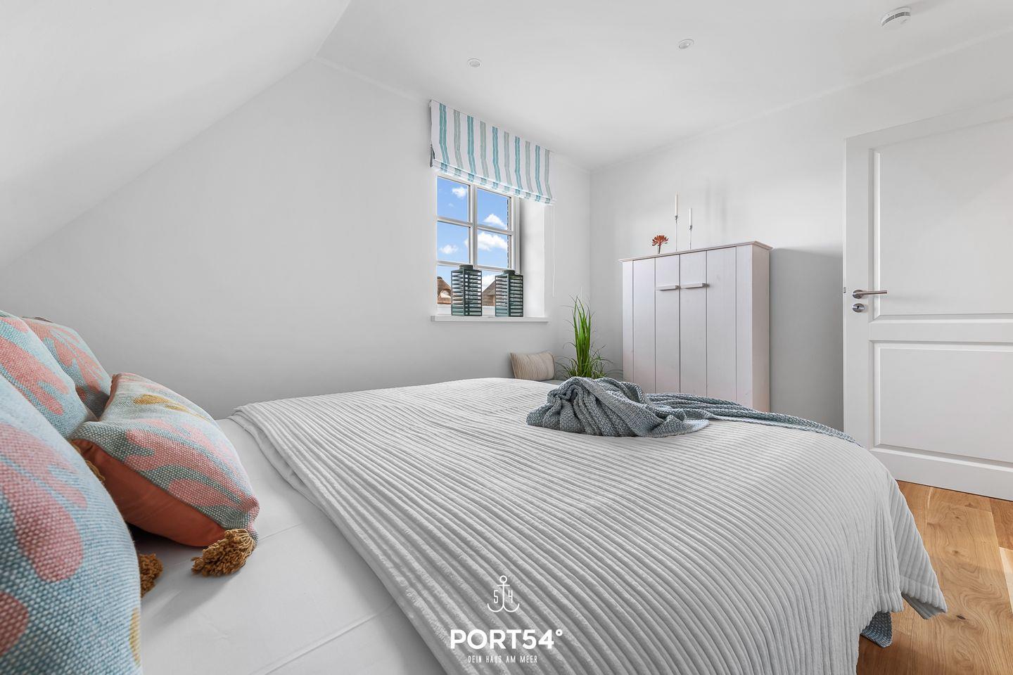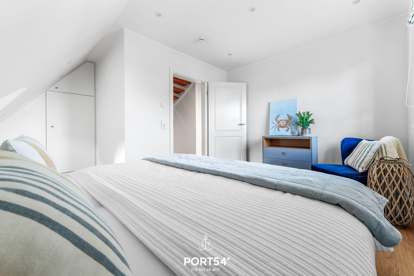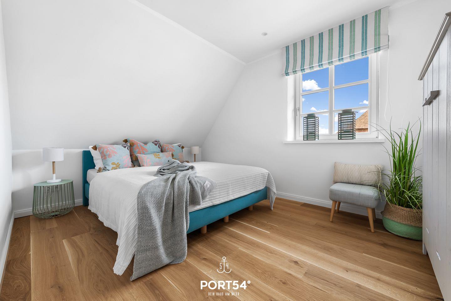 Im ersten Obergeschoss erwarten Dich zwei Schlafzimmer, wovon eins mit einem großen Doppelbett (180x200cm) und das andere mit einem Doppelbett (je 160x200cm) ausgestattet ist. Hier erwartet Dich zudem das Wannenbad mit zusätzlicher ebenerdiger XXL-Dusche.