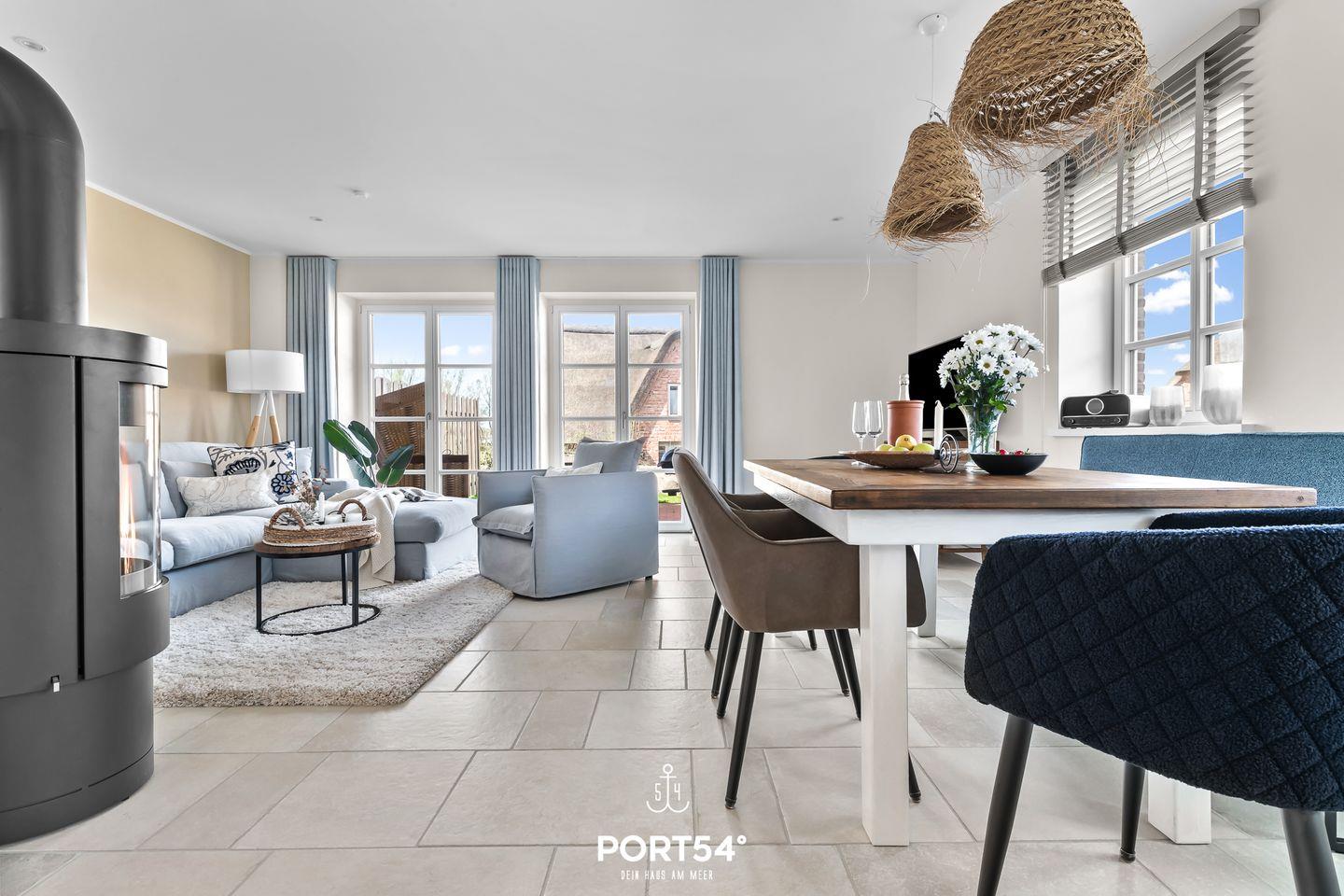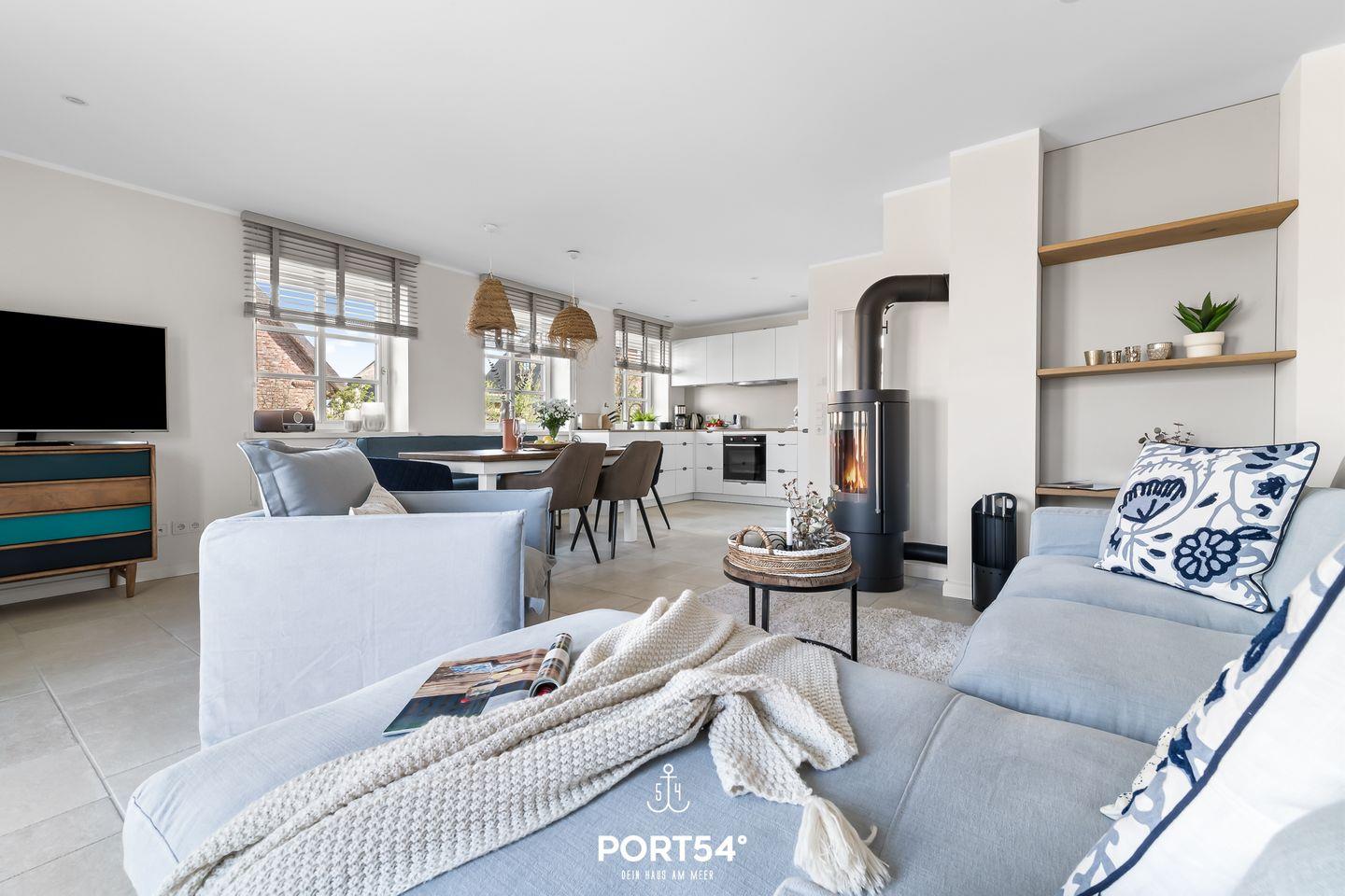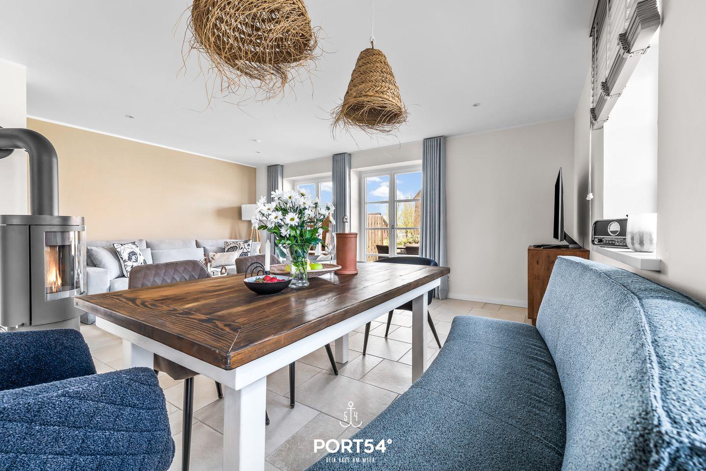 Im Erdgeschoss erwartet Dich der offene Wohn- und Essbereich mit Wohnlandschaft und einem Kamin. Angrenzend befindet sich der Essbereich und die offene, modern gestaltete Küche. Ebenfalls befindet sich im Erdgeschoss ein Tageslichtbad mit ebenerdiger Dusche.